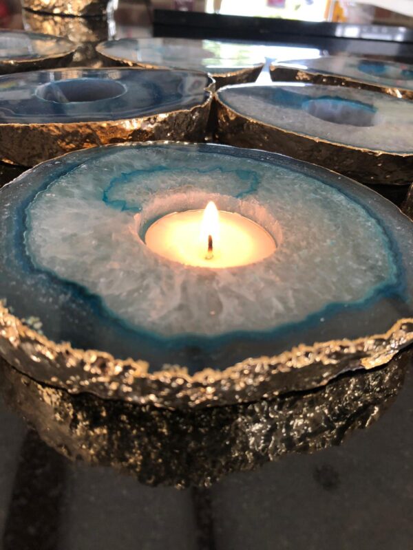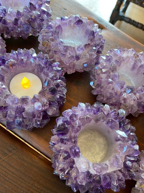 Or take crystal candle holders, where natural citrine points or agate slabs hold tea lights or pillar candles. The candlelight transmits through the translucent crystals, creating a warm, organic glow that no electric light can match.Â