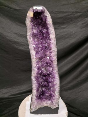 Size matters, certainly. Standard cathedral geodes (roughly 30-45cm) work well on tables and shelves. Tall specimens (45-76cm) for floor-standing. And huge pieces (76cm+) become the focal point of entire rooms.
