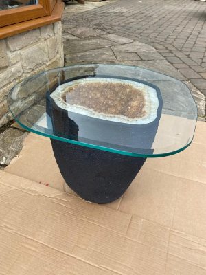 Coffee table displays: Medium-sized geode halves (15-30cm) make perfect centrepieces, especially on glass or light wood surfaces where you can appreciate them from above.