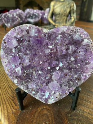 Floor pieces: Large cathedral geodes (60cm+) work beautifully flanking fireplaces, in entrance halls, or anchoring a corner. They need space to breathe and proper lighting to show off their crystals.