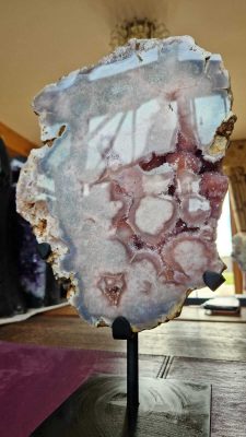 Whilst the outer shell is relatively tough, the crystals inside can be fragile. Handle with care, especially delicate calcite formations. Avoid dropping or knocking against hard surfaces. Amethyst can fade with prolonged sun exposure.