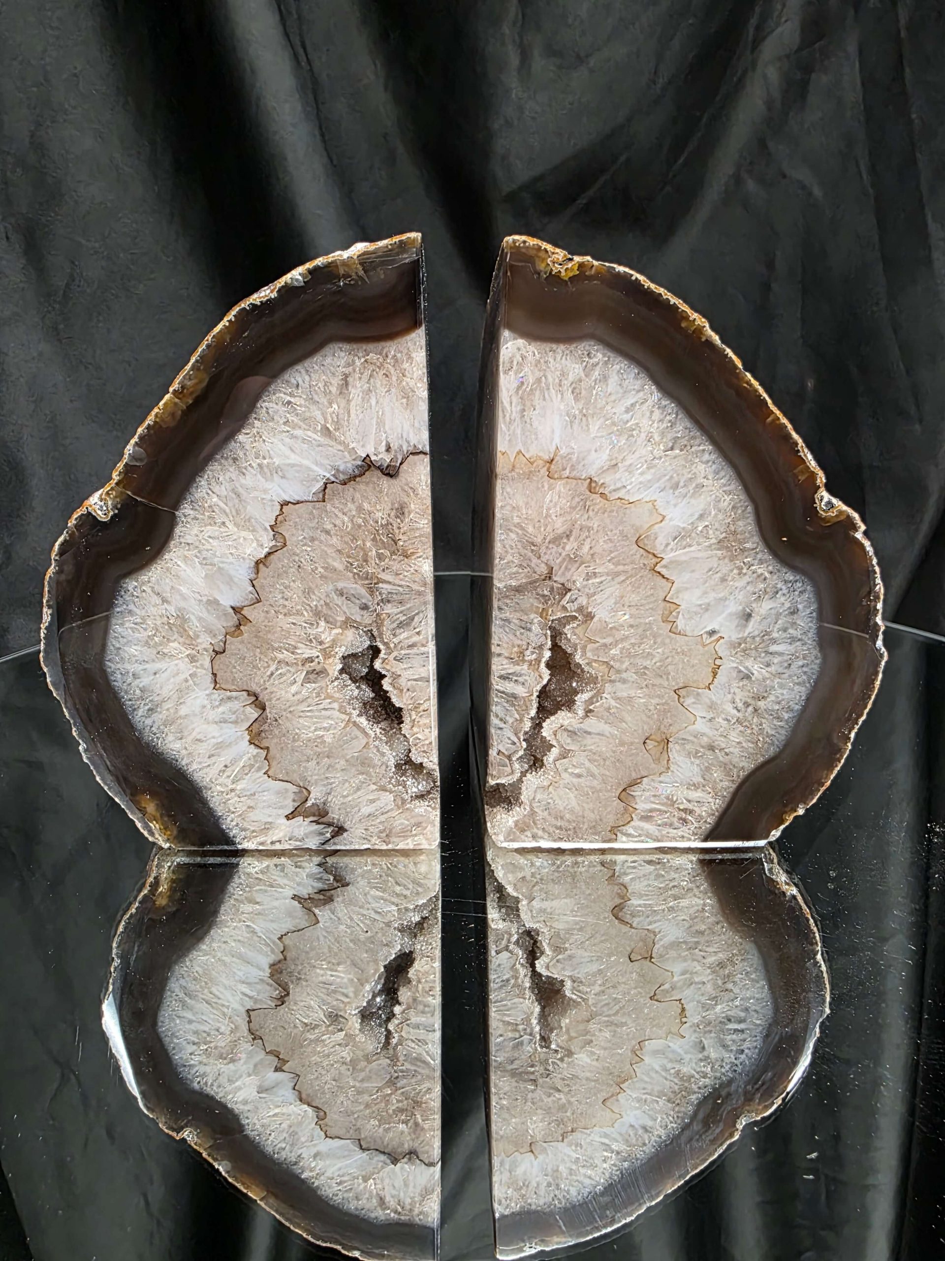 These pieces are ideal for use as bookends or paperweights but can also be used as an exclusive feature ornament together as a pair or individually on their own. These bookends bring a true piece of unique art for your mantel piece, table top, bookshelf or where you’d like to see them placed. These unique agate pieces will make a statement wherever they are placed.