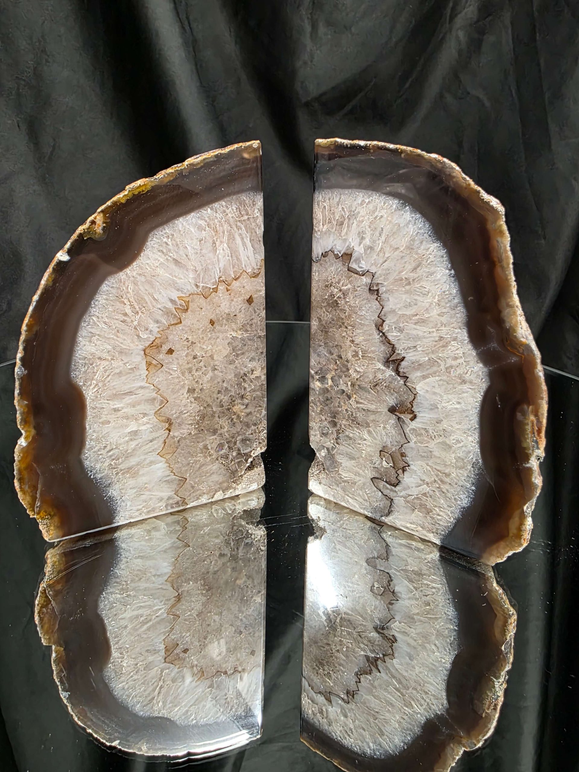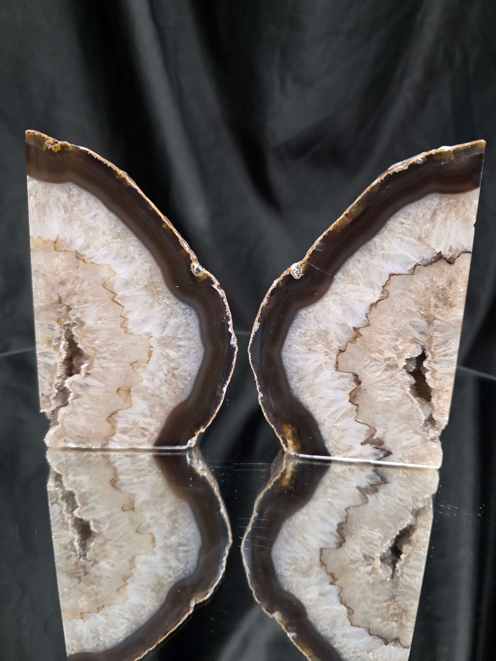 These bookends are with the Natural edge, the edging of this agate piece is left natural to show off the natural beauty of the agate stone. A true treat upon your surface which will make you smile each time you look at them. These pieces are very unique and a fantastic home accessory but also Brazilian agate is known for its calming powers and ability to cleanse its surrounding energy.