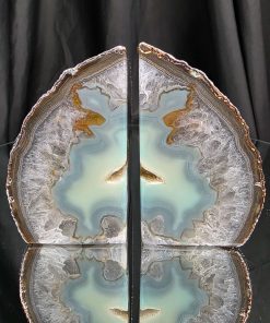 These pieces are ideal for use as bookends or paperweights but can also be used as an exclusive feature ornament together as a pair or individually on their own. These bookends bring a true piece of unique art for your mantel piece, table top, bookshelf or where you’d like to see them placed. These unique agate pieces will make a statement wherever they are placed.