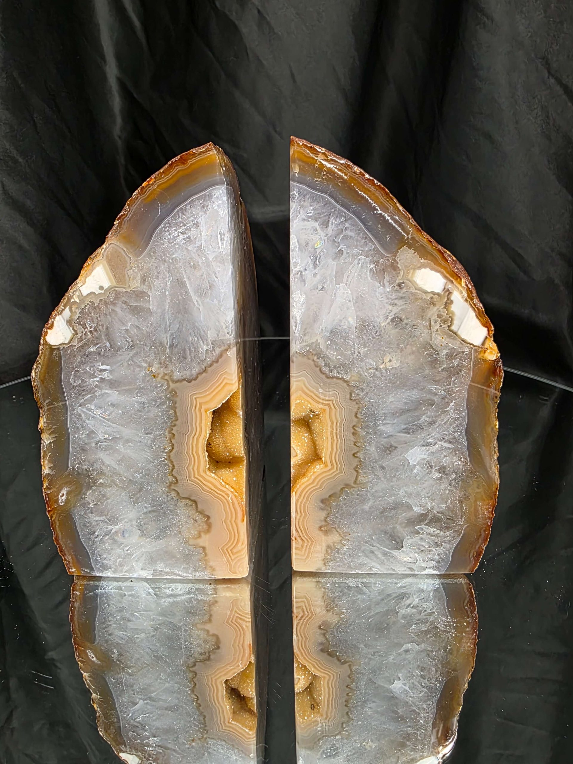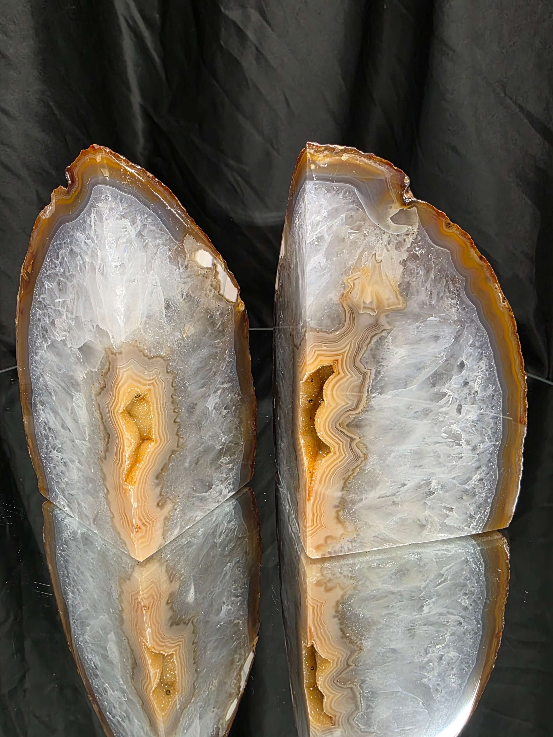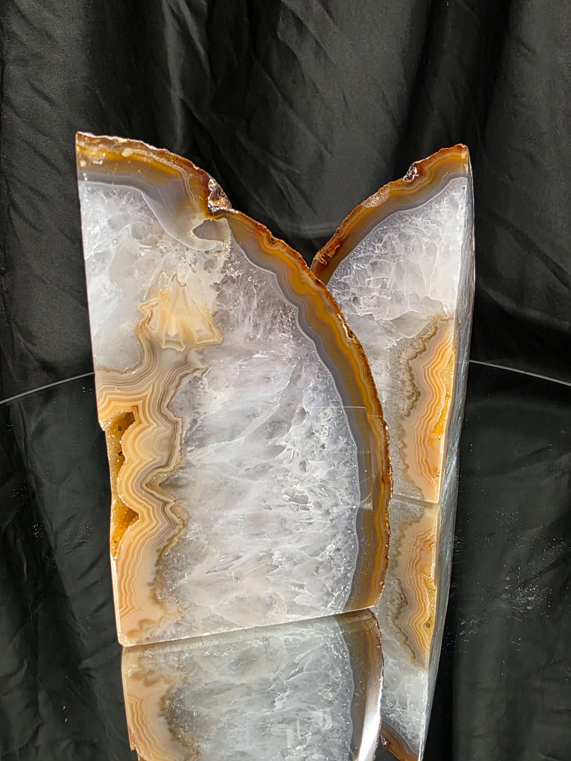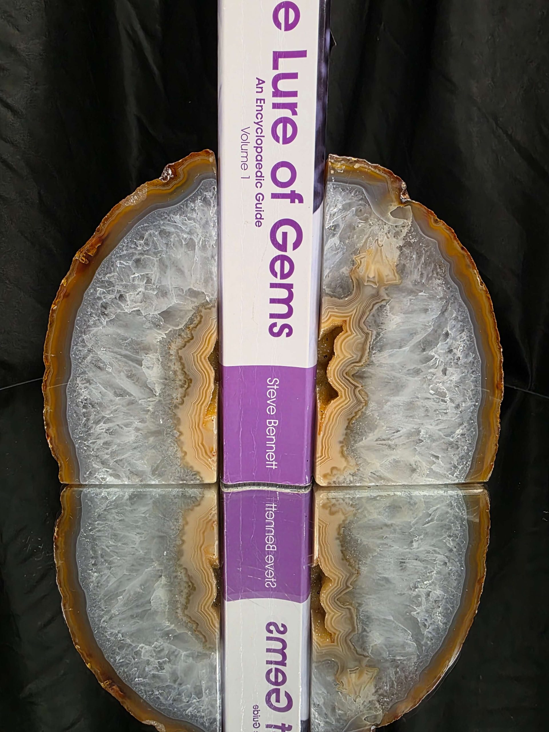 These bookends are with the Natural edge, the edging of this agate piece is left natural to show off the natural beauty of the agate stone. A true treat upon your surface which will make you smile each time you look at them. These pieces are very unique and a fantastic home accessory but also Brazilian agate is known for its calming powers and ability to cleanse its surrounding energy.