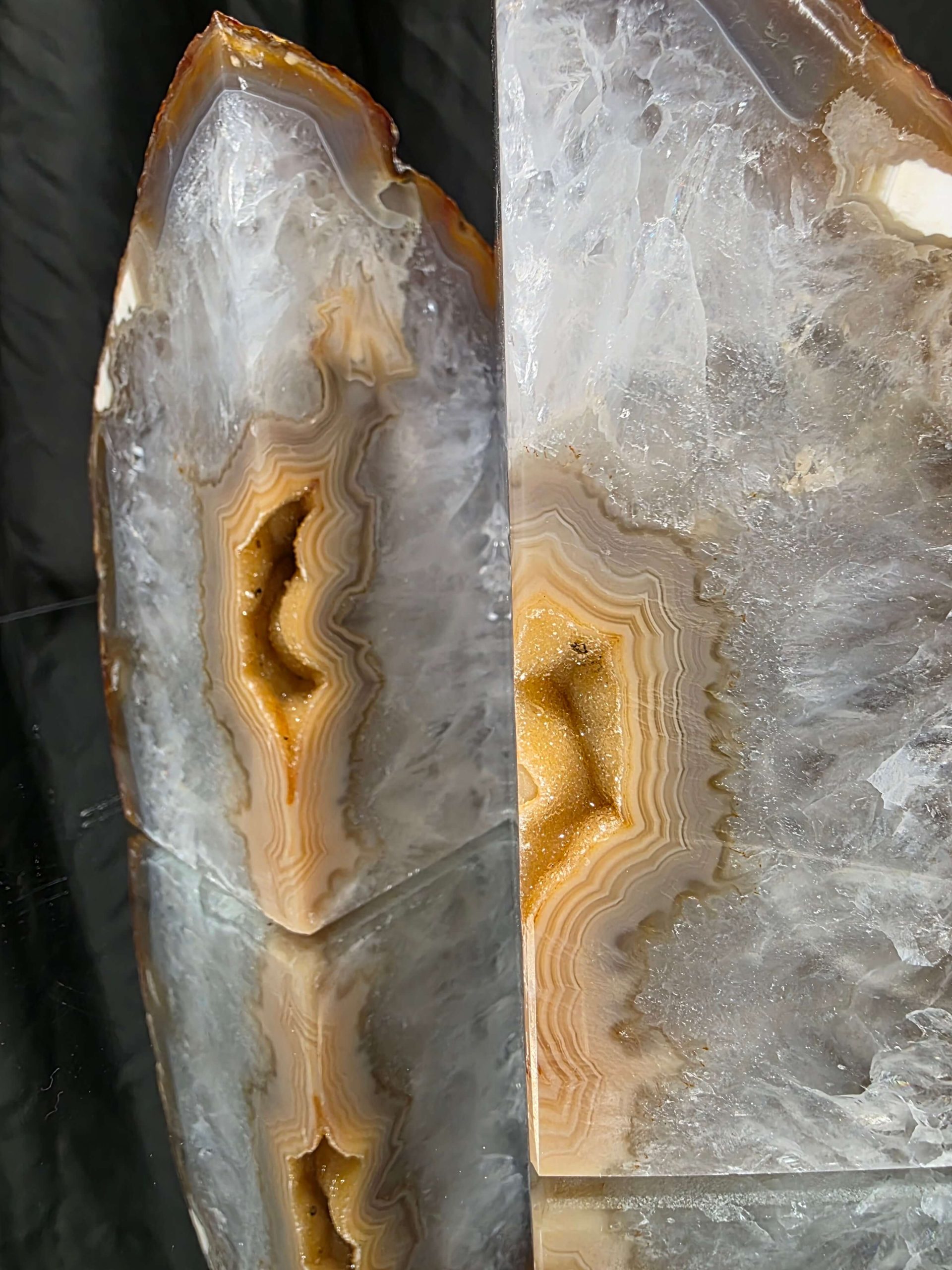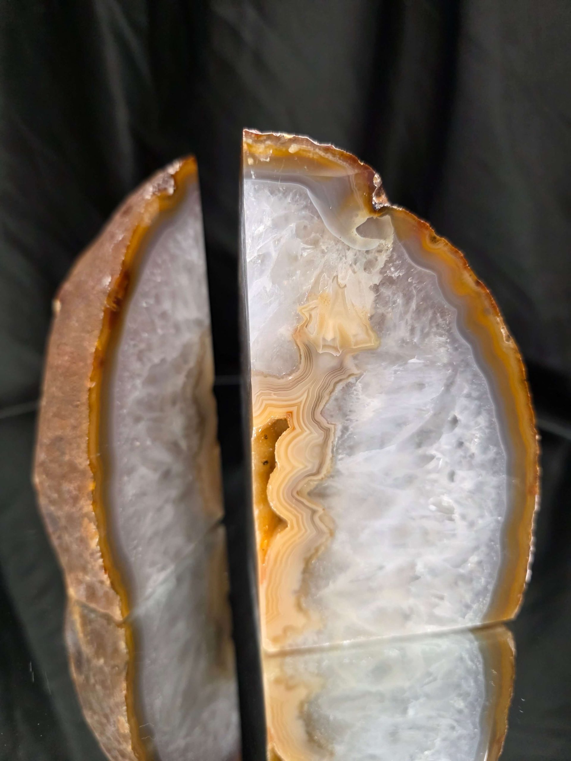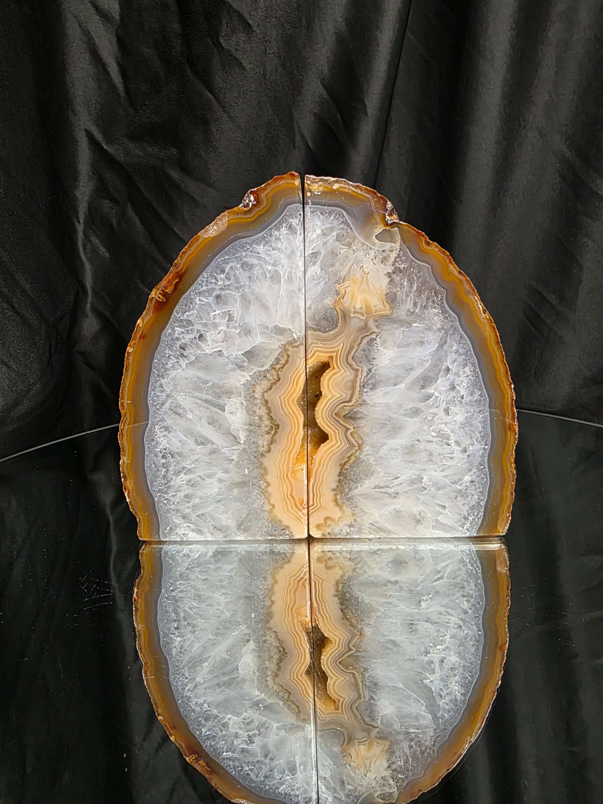 These bookends are with the Natural edge, the edging of this agate piece is left natural to show off the natural beauty of the agate stone. A true treat upon your surface which will make you smile each time you look at them. These pieces are very unique and a fantastic home accessory but also Brazilian agate is known for its calming powers and ability to cleanse its surrounding energy.