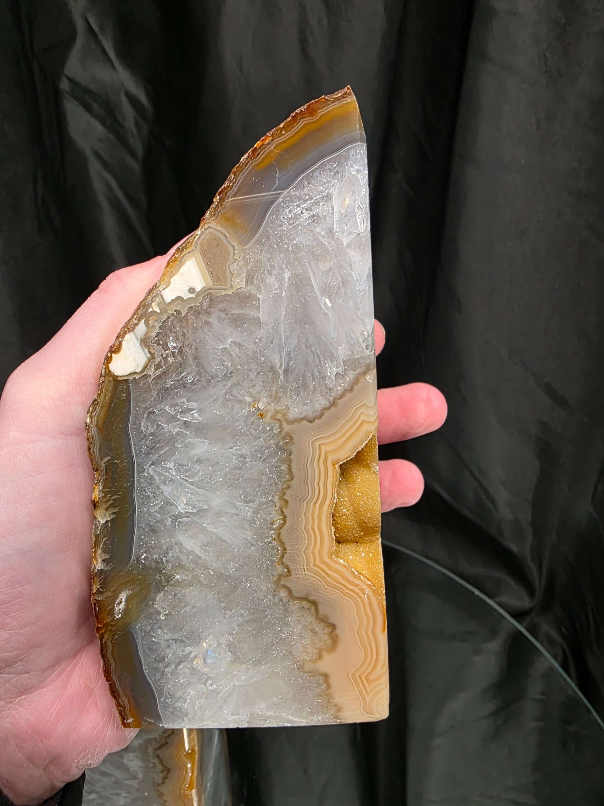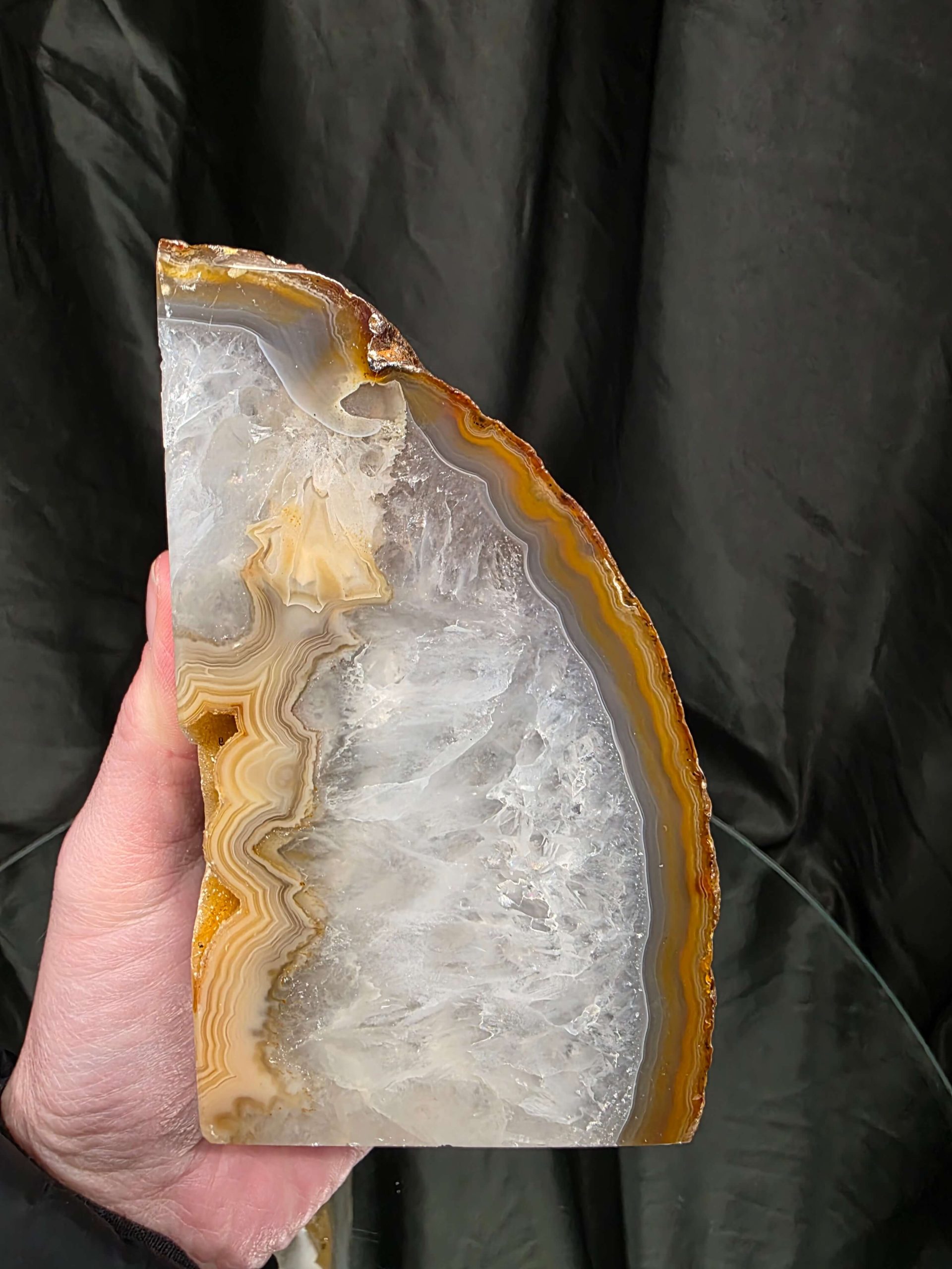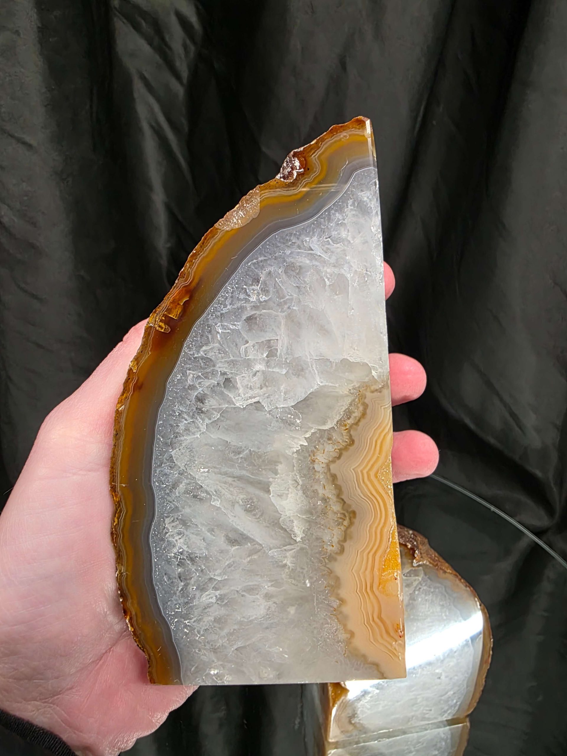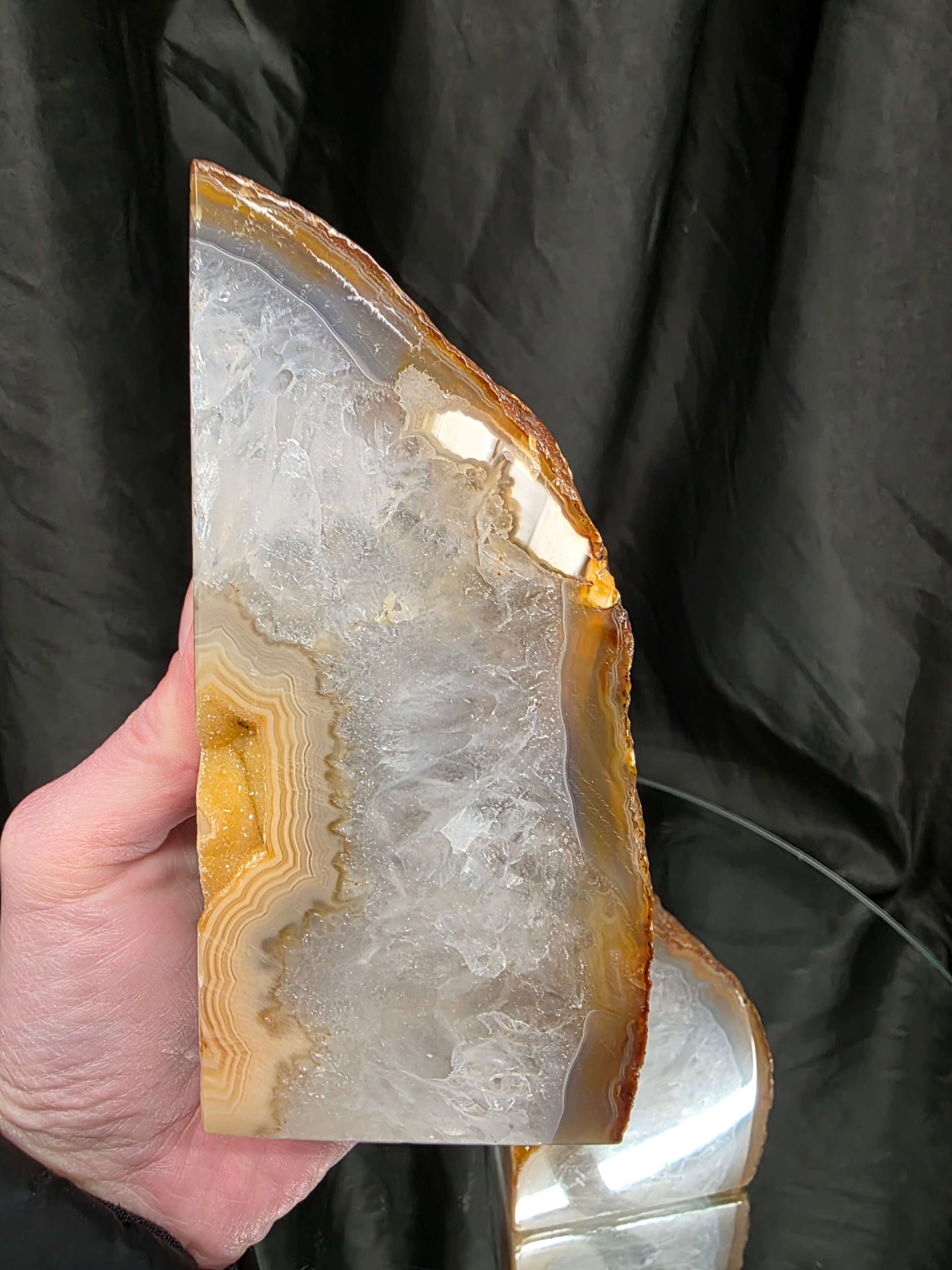 These bookends are with the Natural edge, the edging of this agate piece is left natural to show off the natural beauty of the agate stone. A true treat upon your surface which will make you smile each time you look at them. These pieces are very unique and a fantastic home accessory but also Brazilian agate is known for its calming powers and ability to cleanse its surrounding energy.