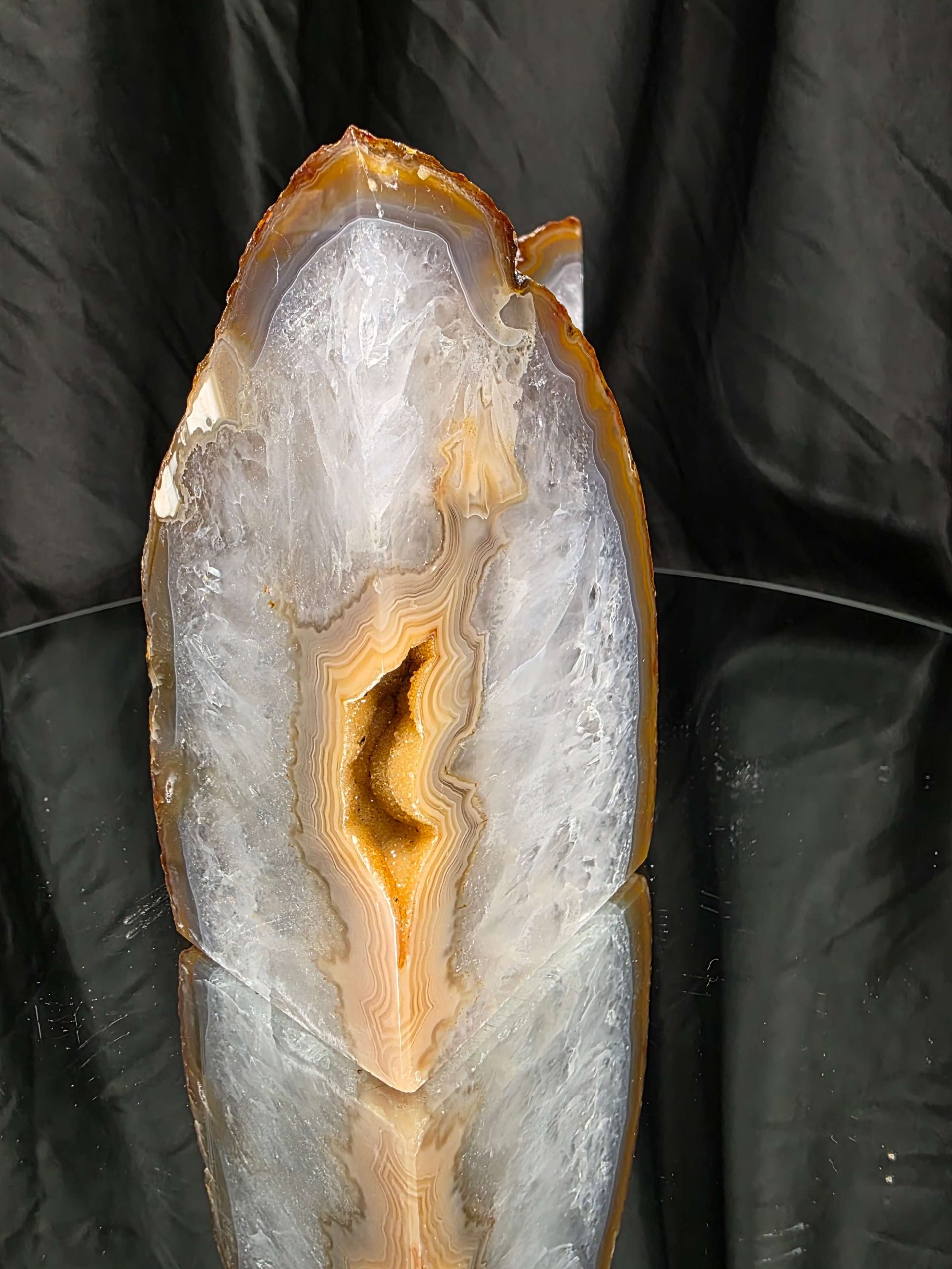 These pieces are ideal for use as bookends or paperweights but can also be used as an exclusive feature ornament together as a pair or individually on their own. These bookends bring a true piece of unique art for your mantel piece, table top, bookshelf or where you’d like to see them placed. These unique agate pieces will make a statement wherever they are placed.