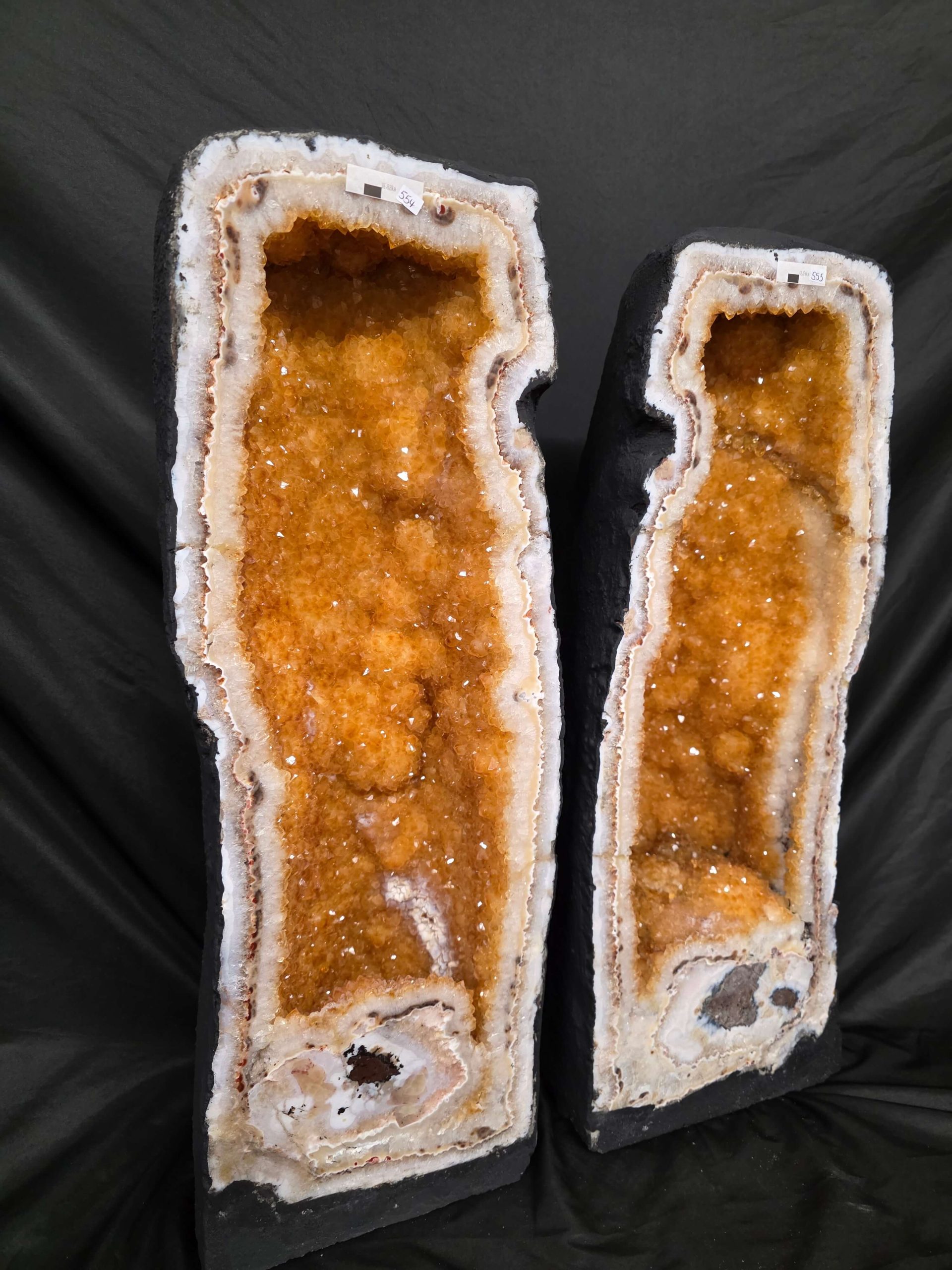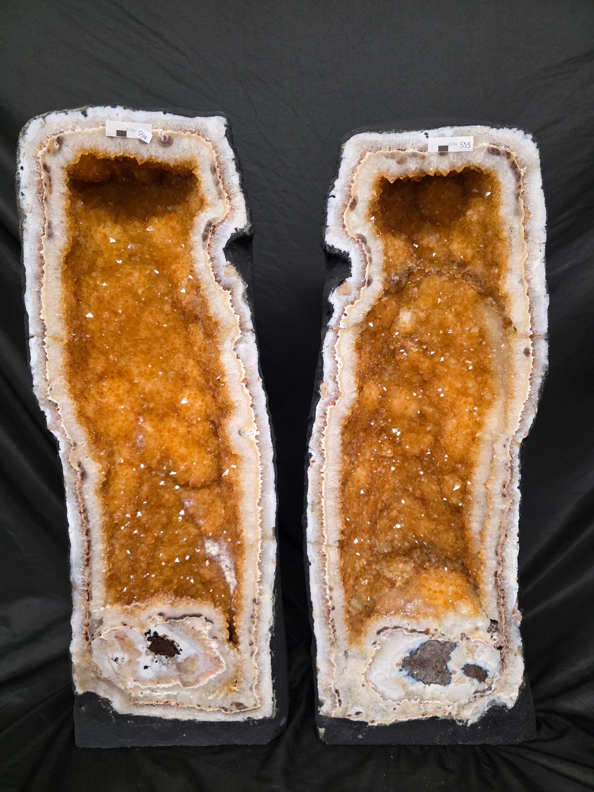 Tall Citrine Geode PAIR 554-555 Crystal Cluster Druzy Premium Grade 42kg each H66xW24xD20cm