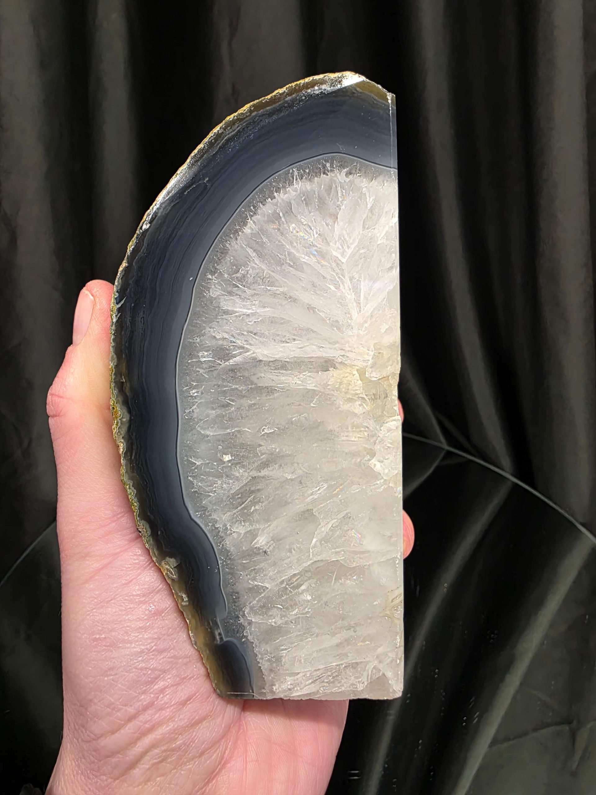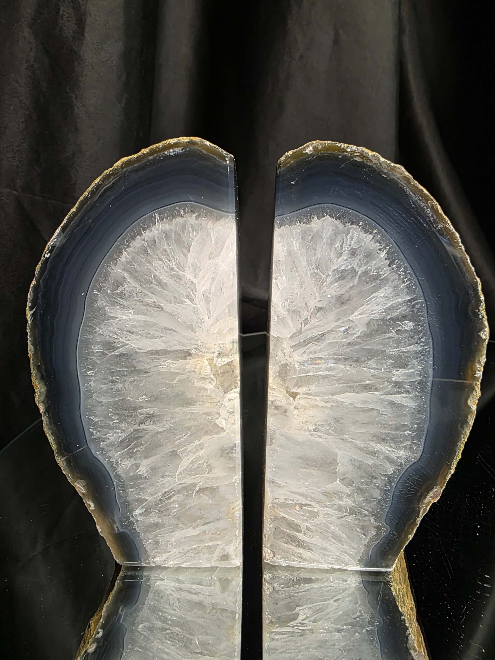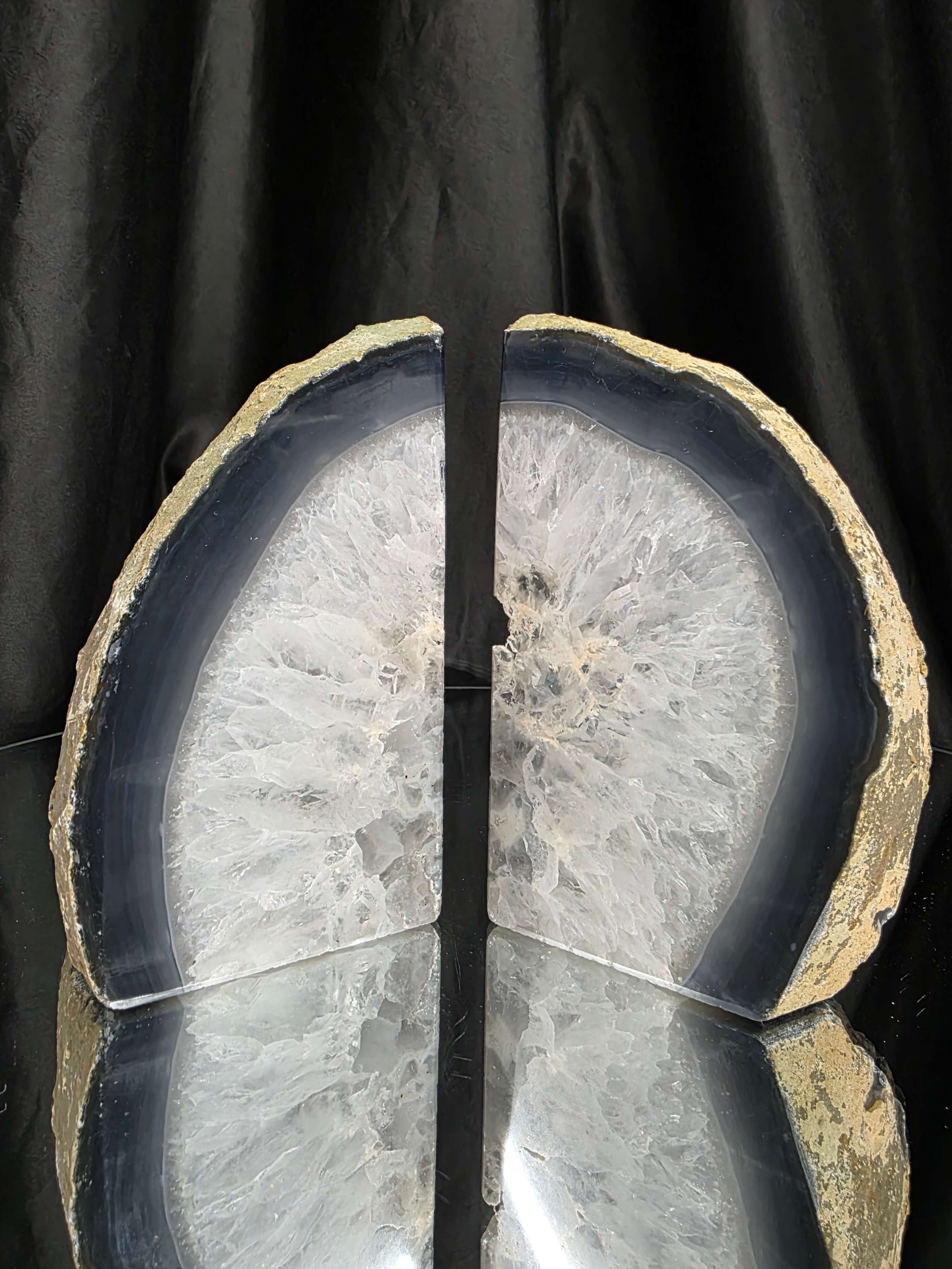 Unique Design-Made of natural agate geodes, crystal geode quartz inside and polished outside. Due to the natural formation of agate each bookend will vary slightly in size and design. No two pieces of agate are the same which only adds to the charm! You will receive a pair very similar to the photograph you see in the listing.