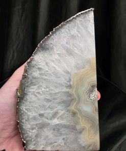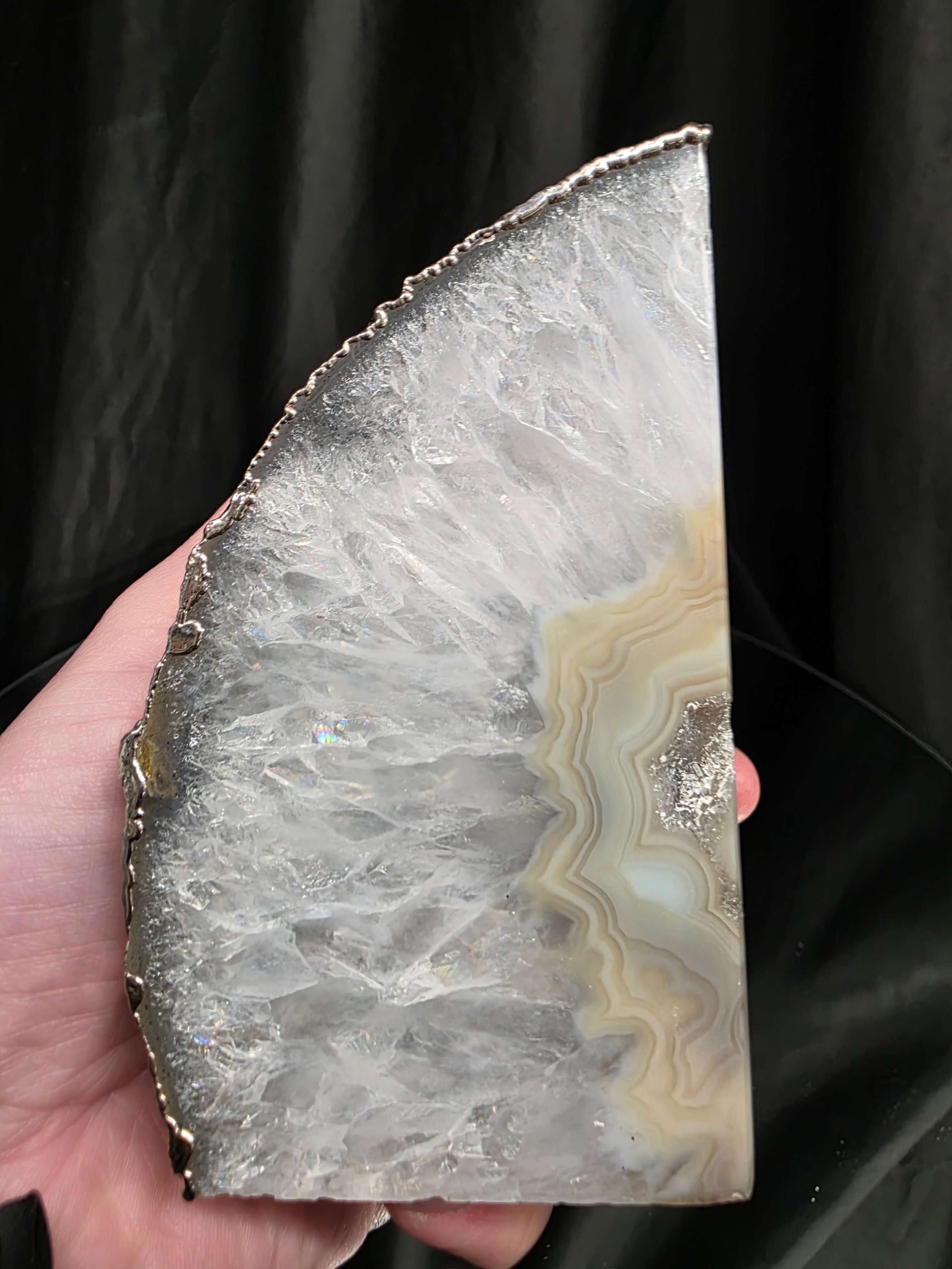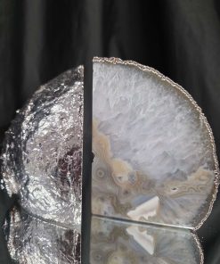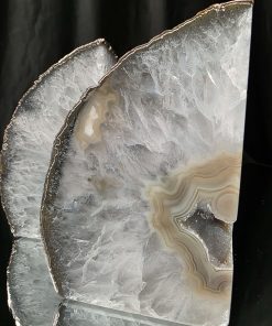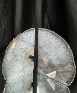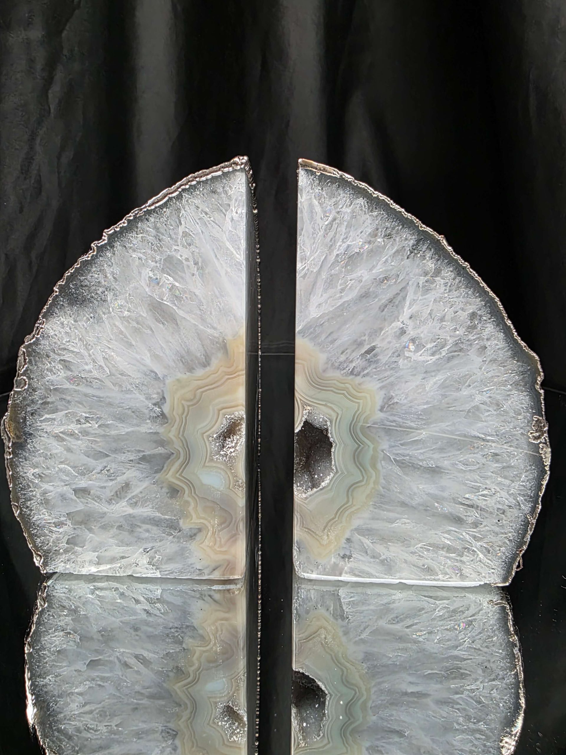 These bookends are with the gilded edge, this silver electroplated edge takes these agate bookends to a new dimension of beauty and sophistication. A true treat upon your surface which will make you smile each time you look at them. These pieces are very unique and a fantastic home accessory, also Brazilian agate is known for its calming powers and ability to cleanse its surrounding energy.