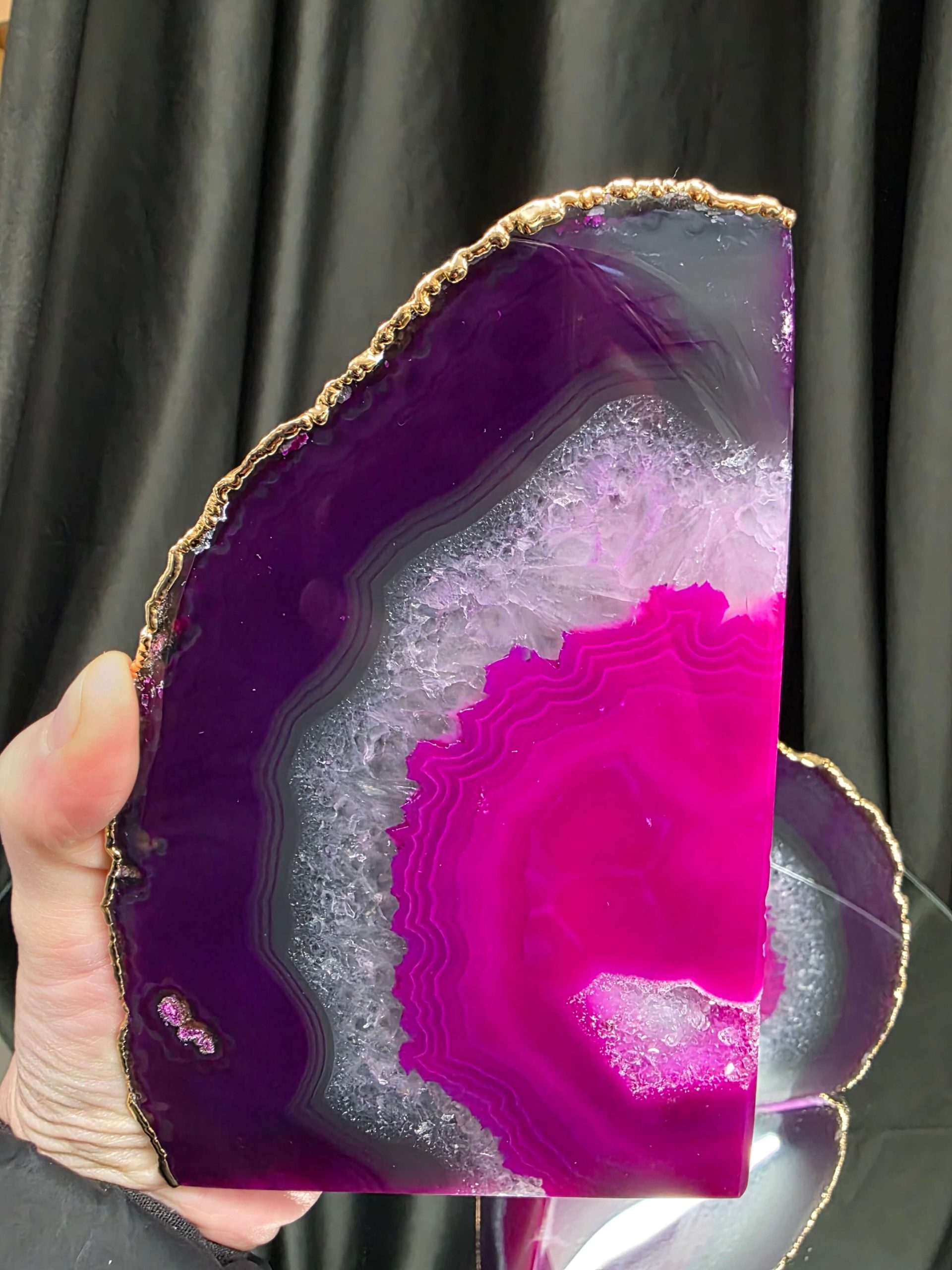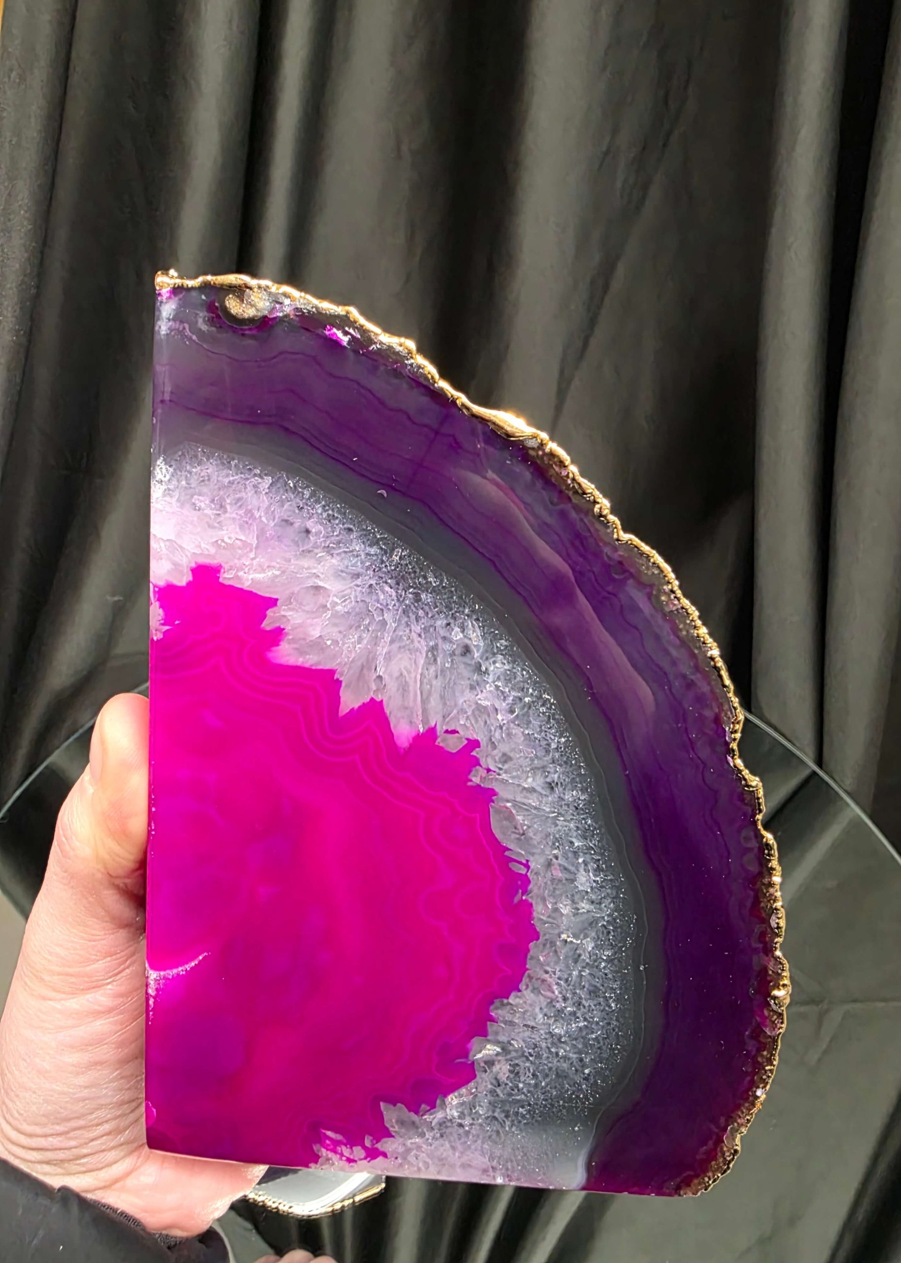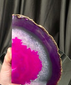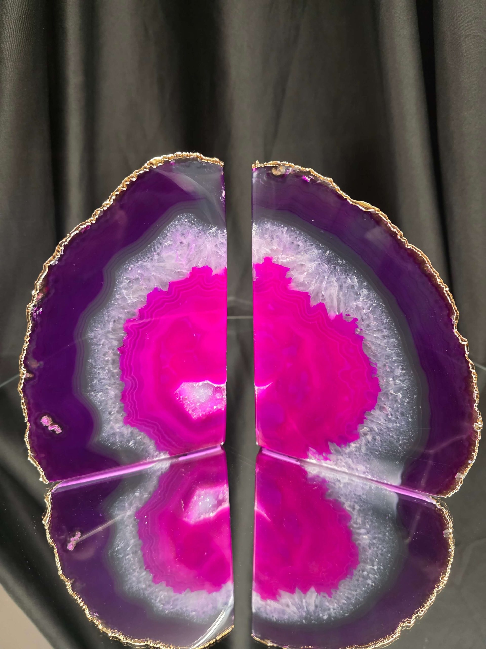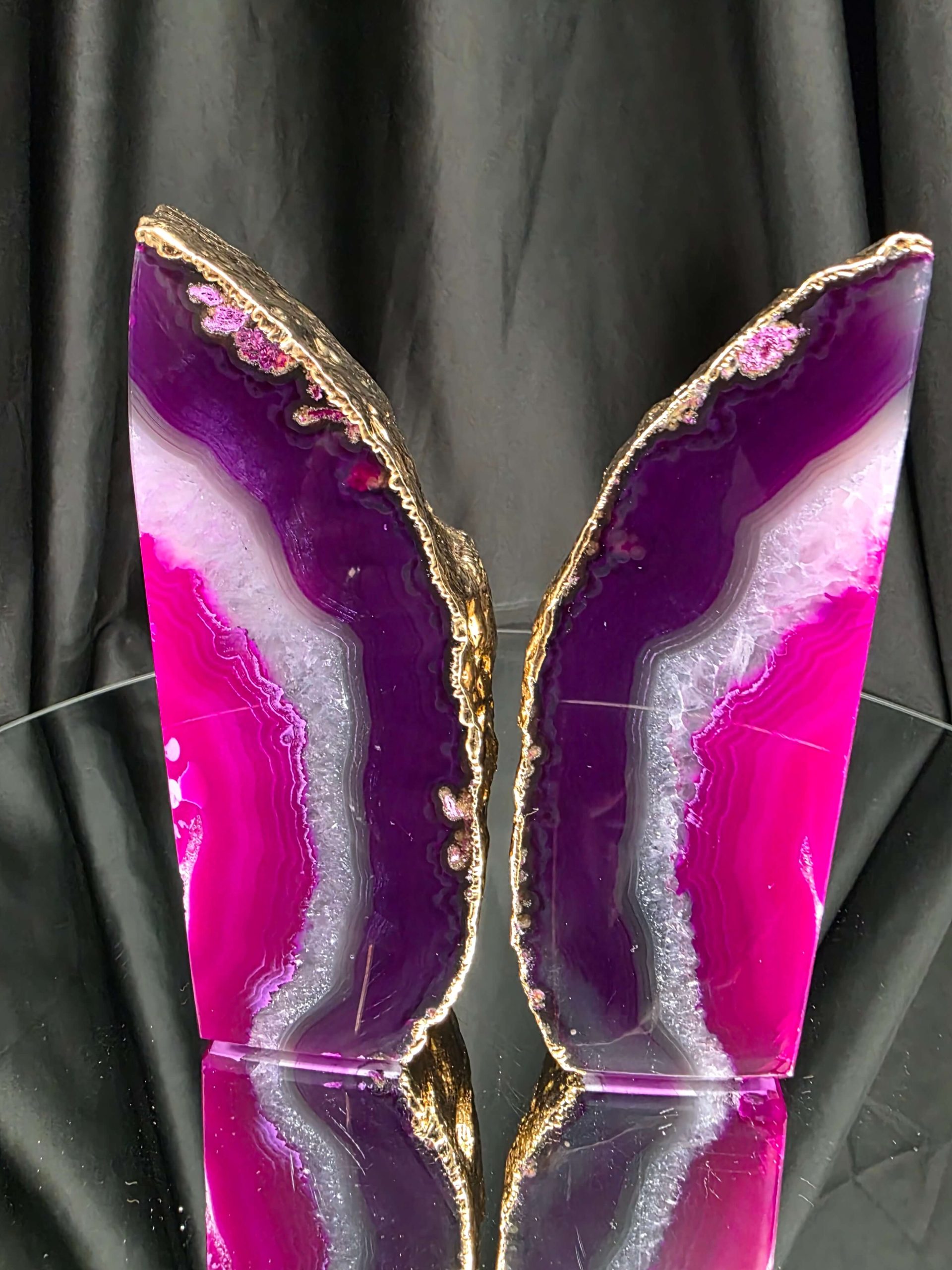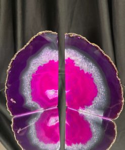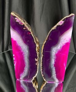 Pink Agate 24ct Gold Edge Microcrystalline Quartz Premium Bookends 3 Ornament Handpicked Size 2.371kg H16.5xW21.5xD6cm