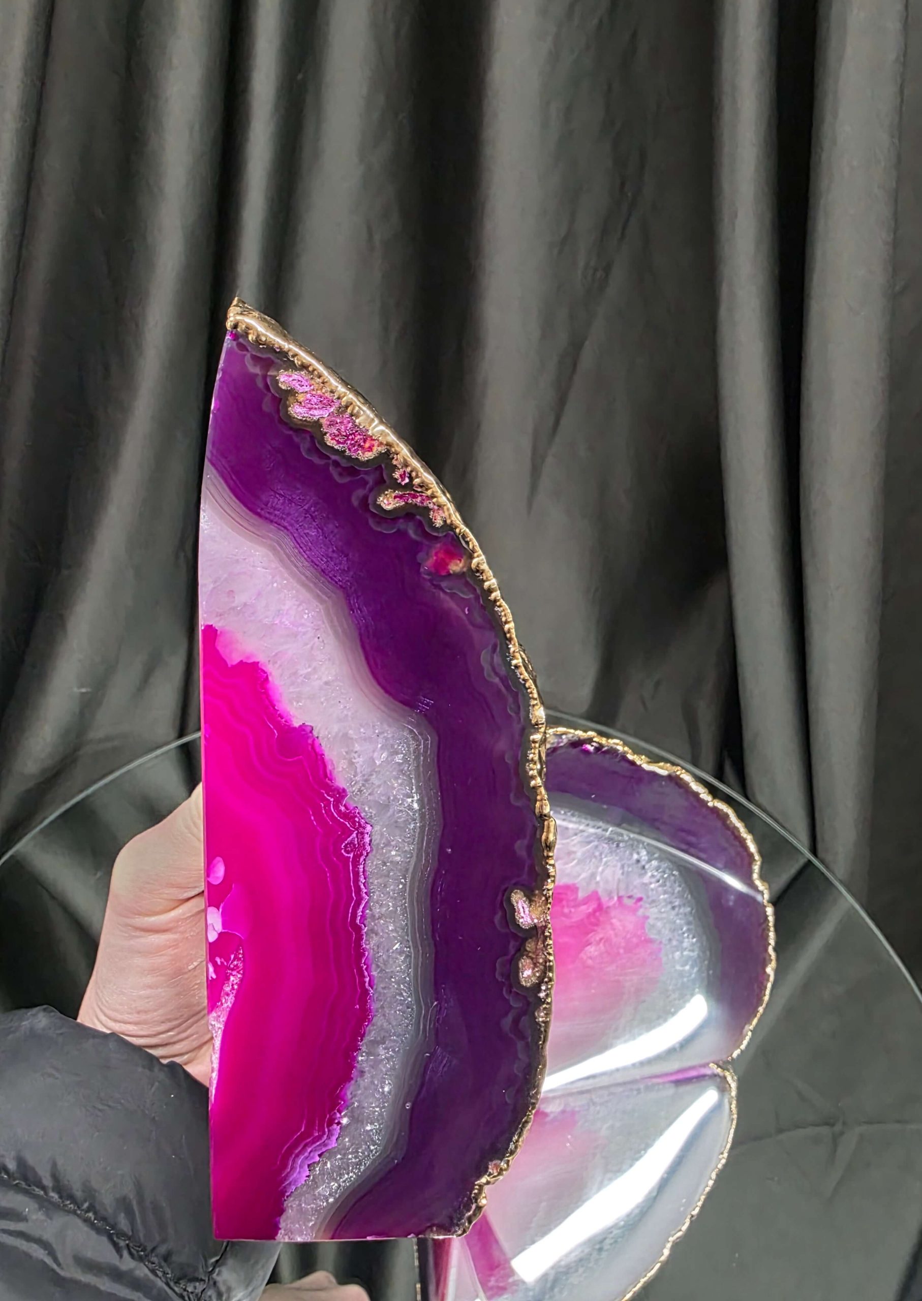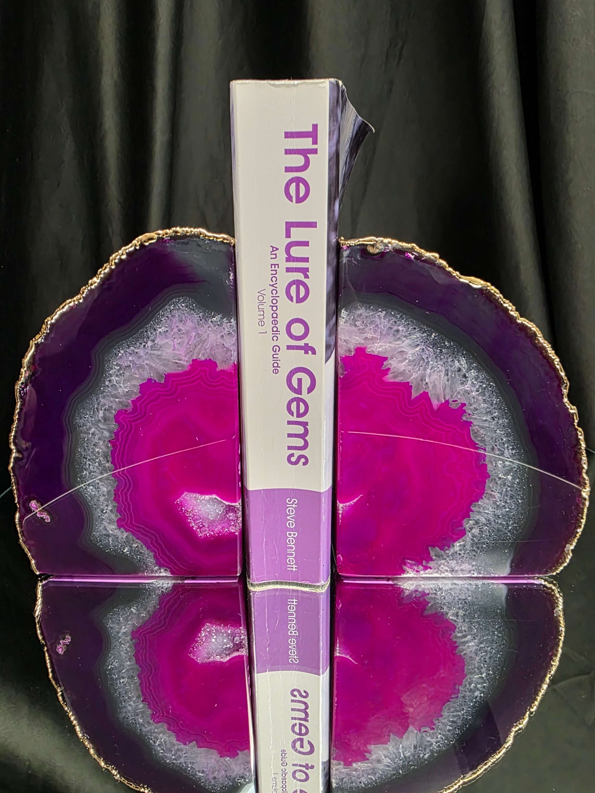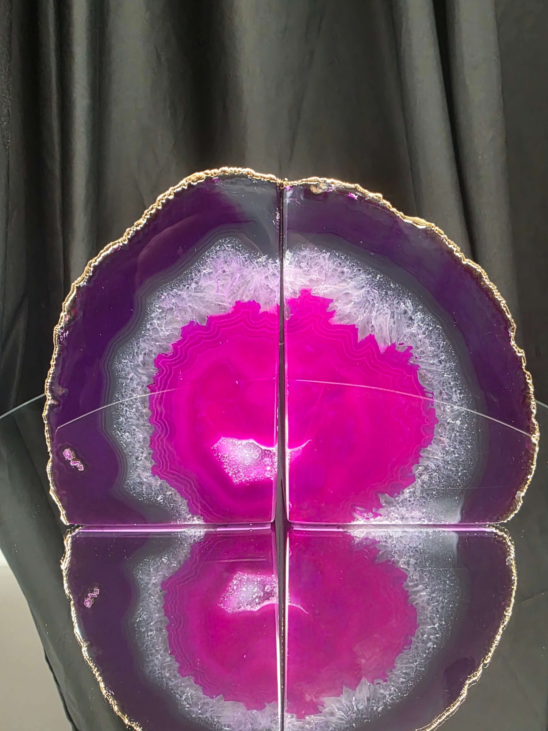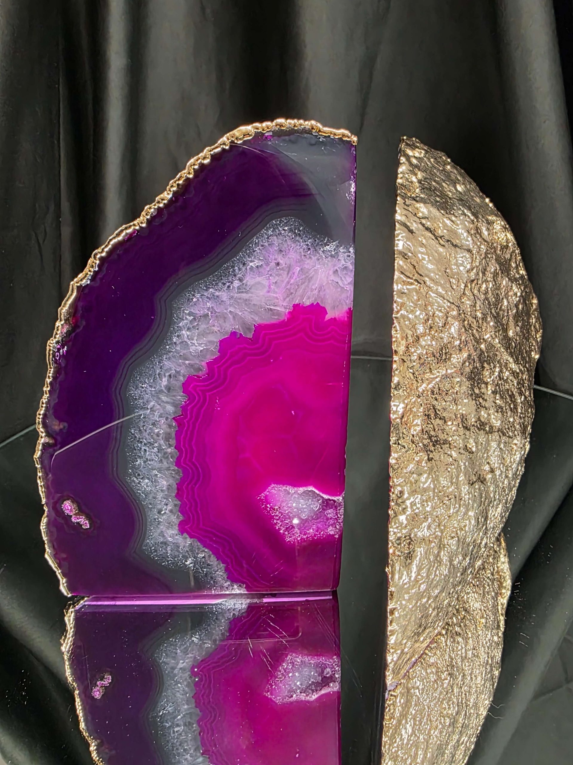 Pink Agate 24ct Gold Edge Microcrystalline Quartz Premium Bookends 3 Ornament Handpicked Size 2.371kg H16.5xW21.5xD6cm