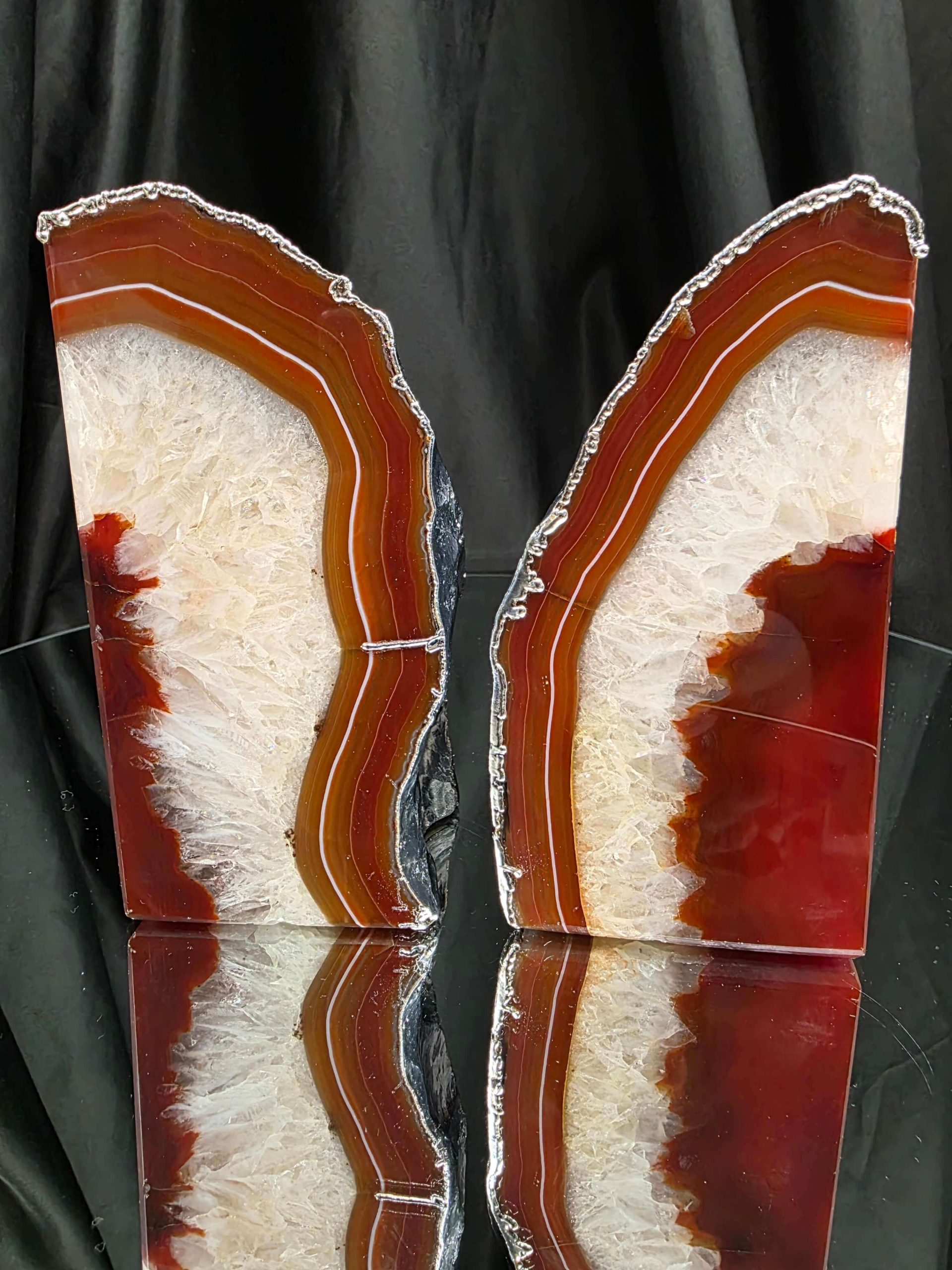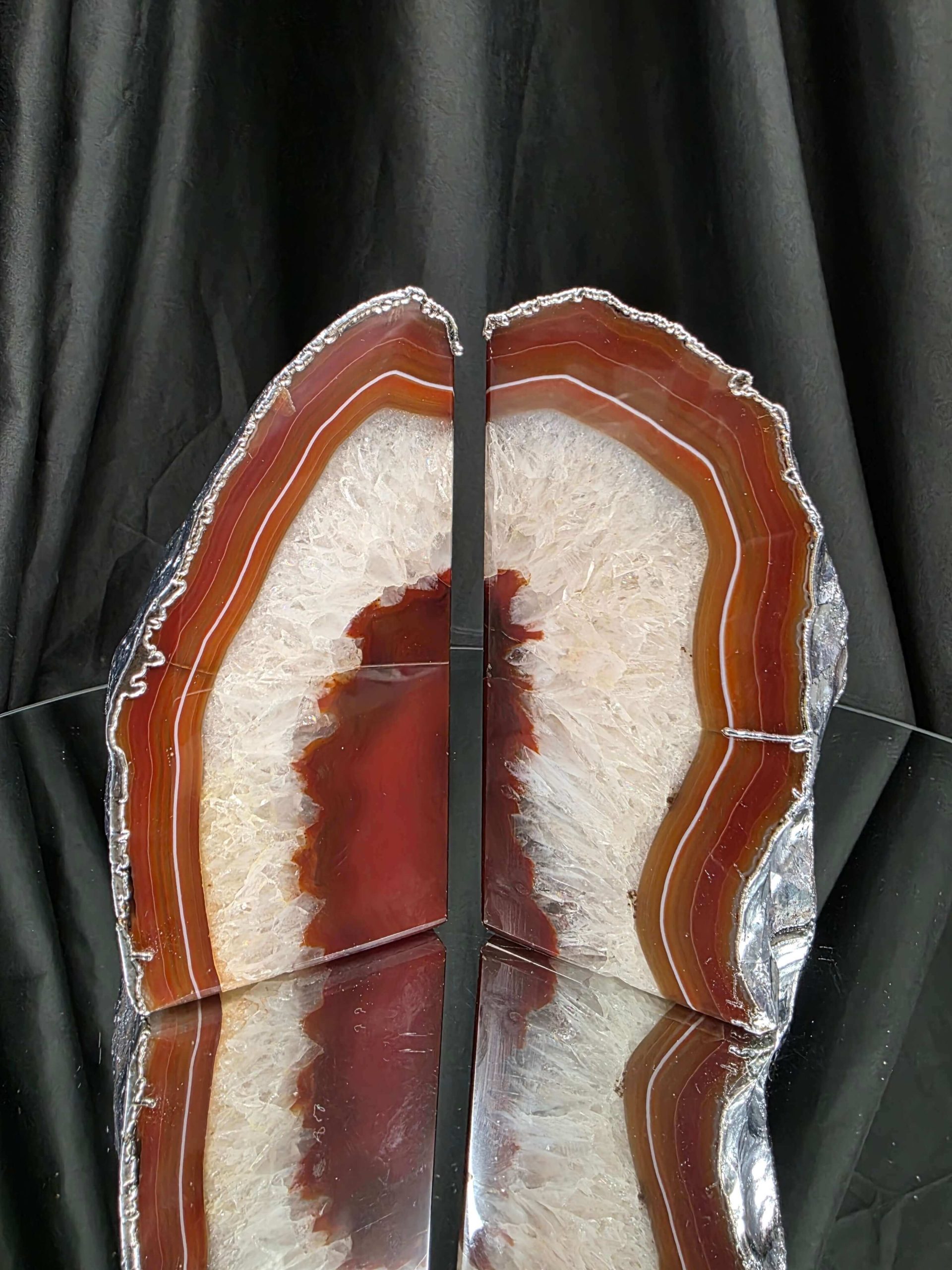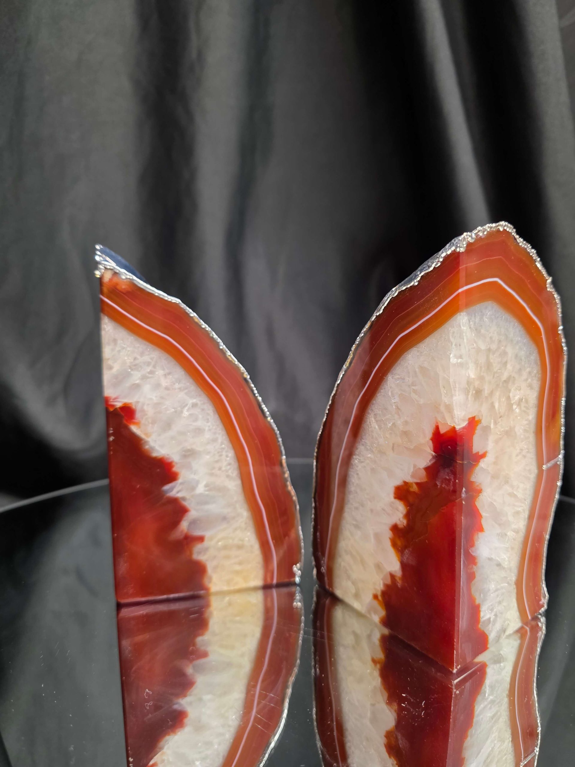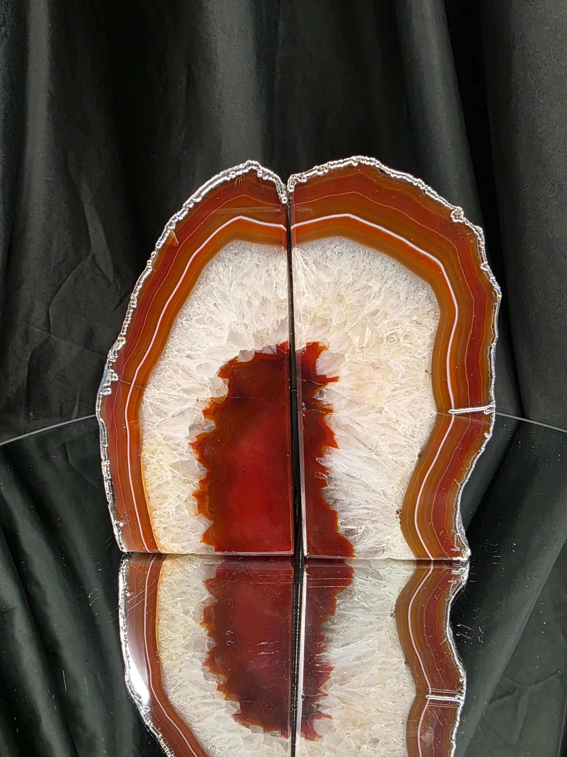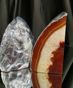 Red Agate Silver Edge Microcrystalline Quartz Premium Bookends 3 Ornament Handpicked Size 1.959kg H14xW14xD7cm