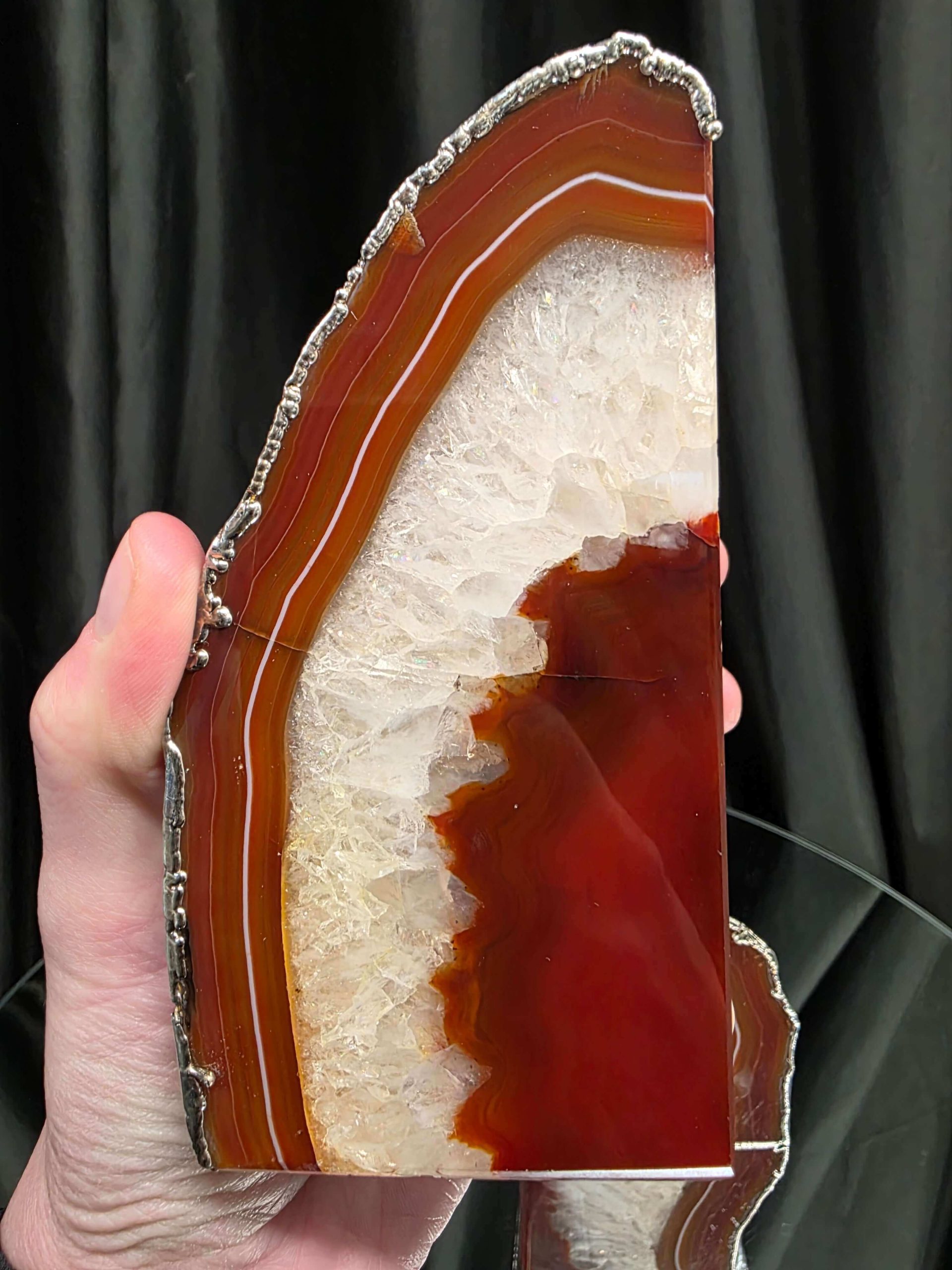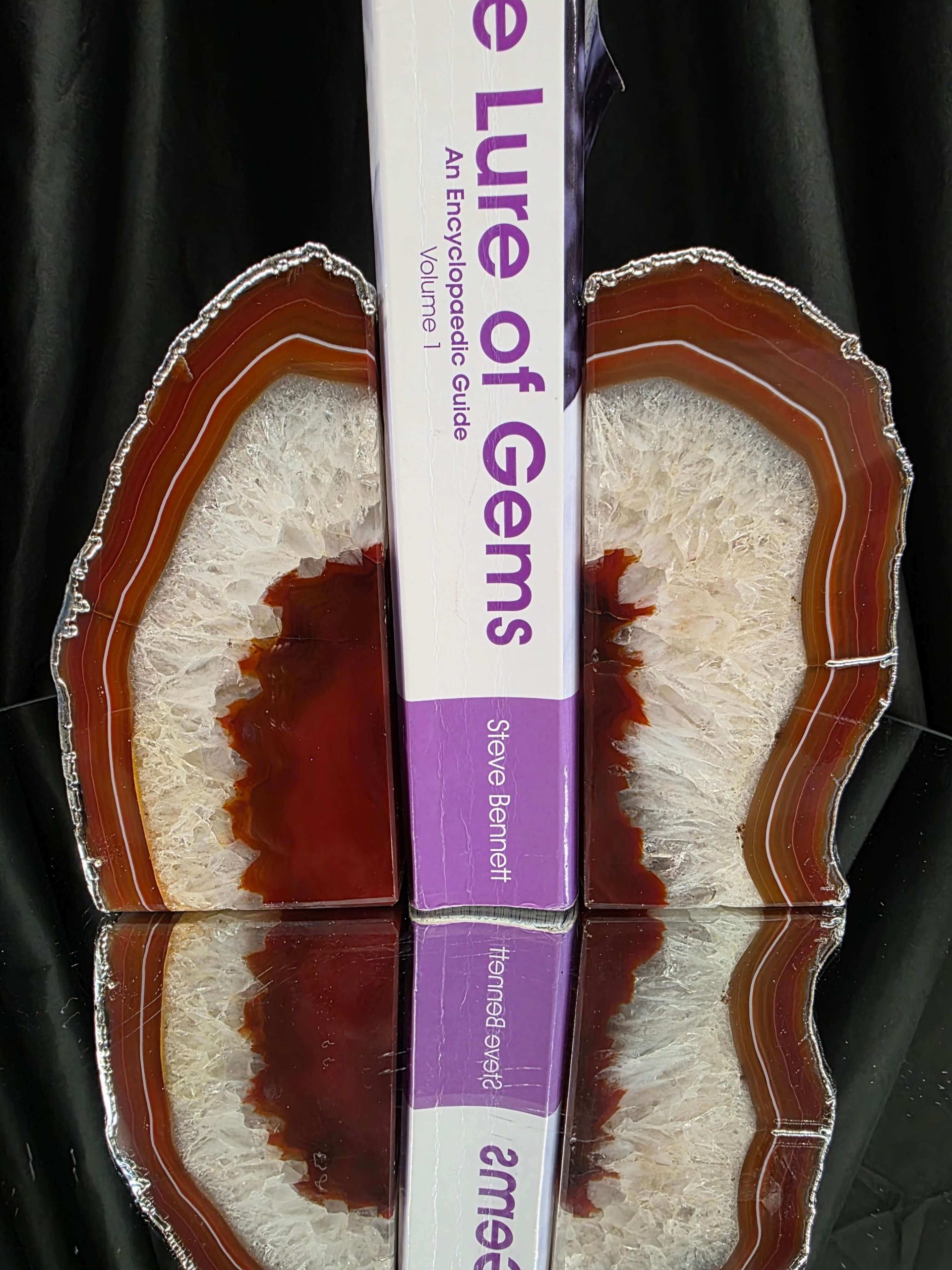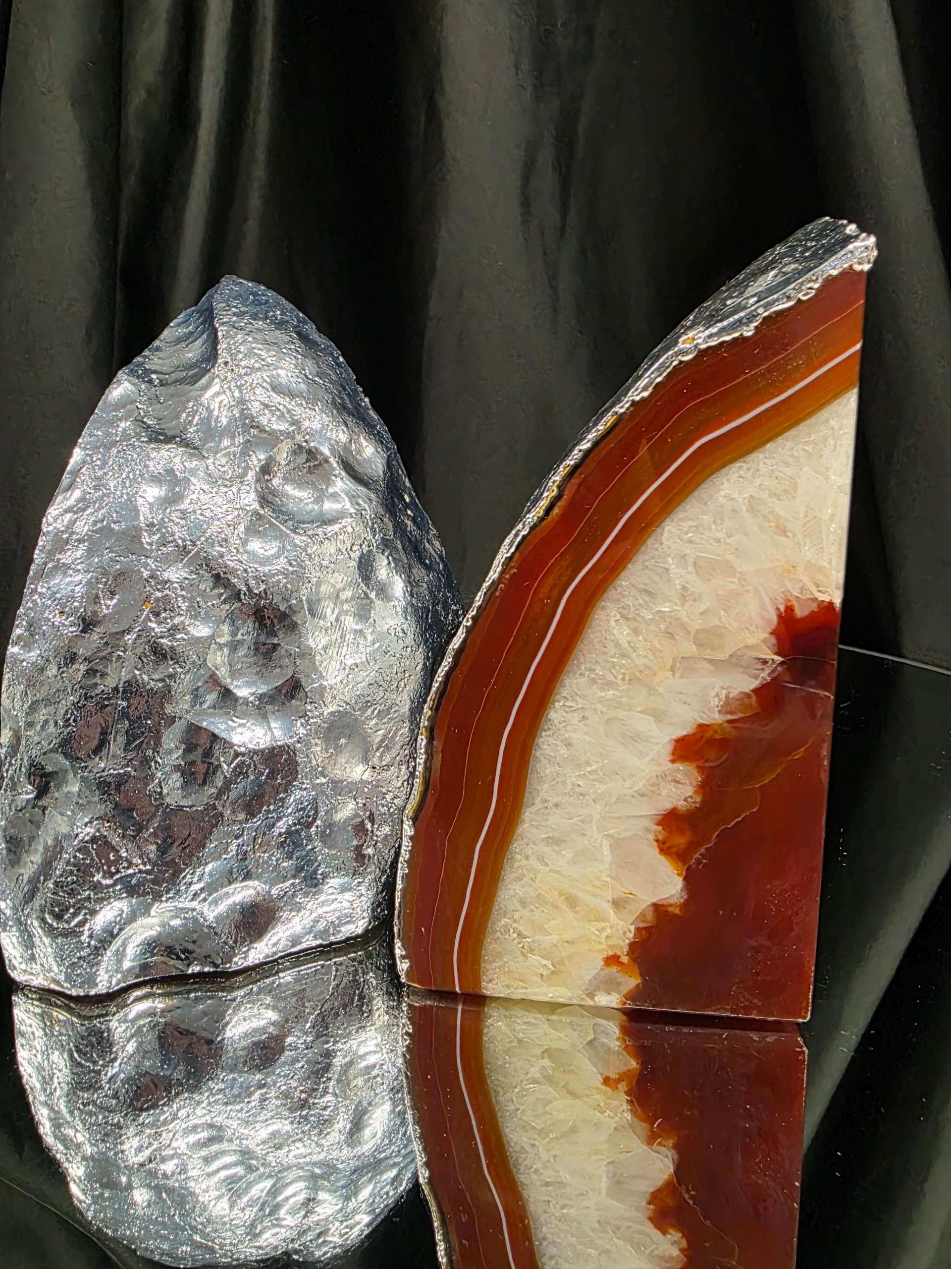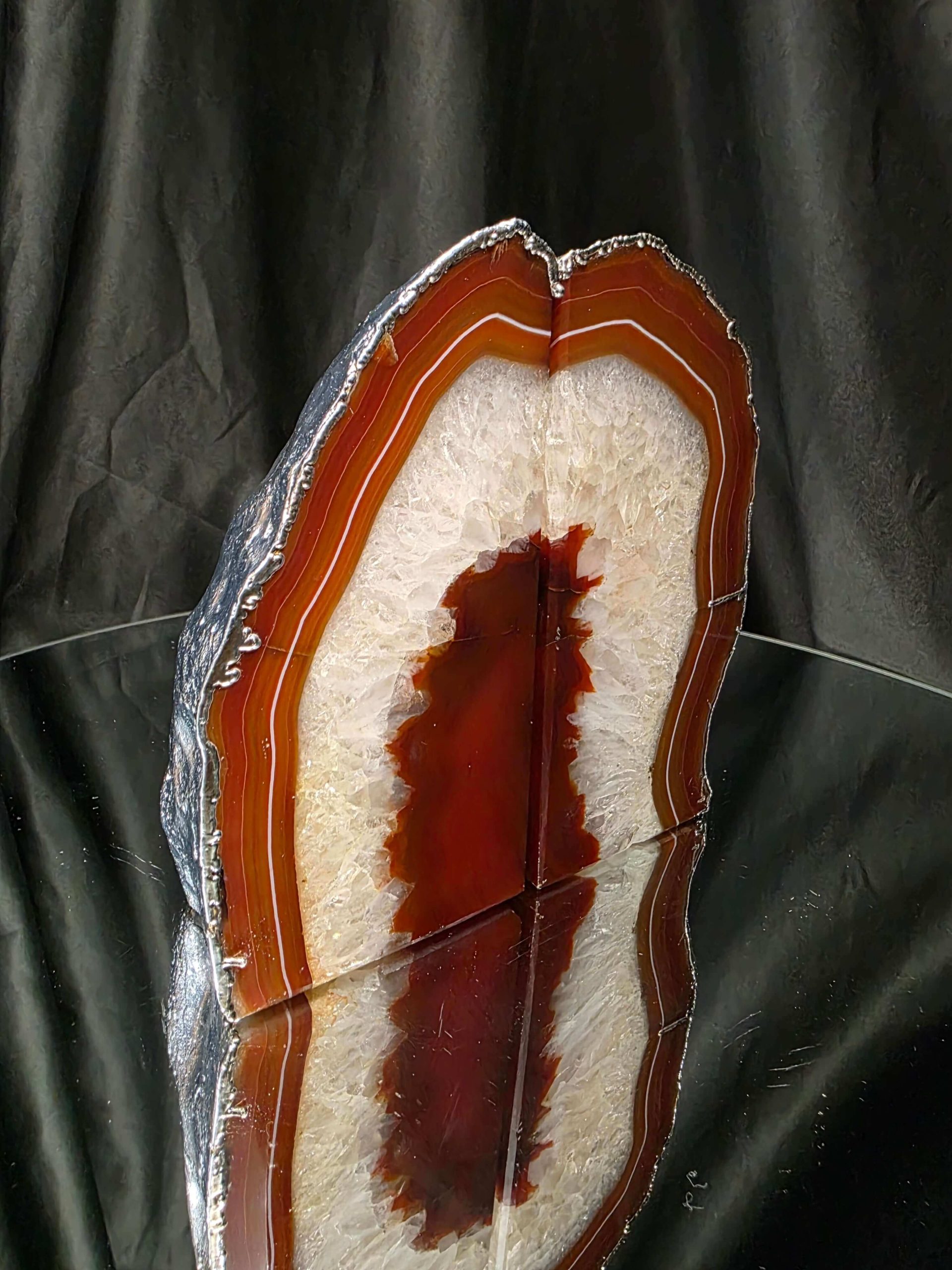 Red Agate Silver Edge Microcrystalline Quartz Premium Bookends 3 Ornament Handpicked Size 1.959kg H14xW14xD7cm
