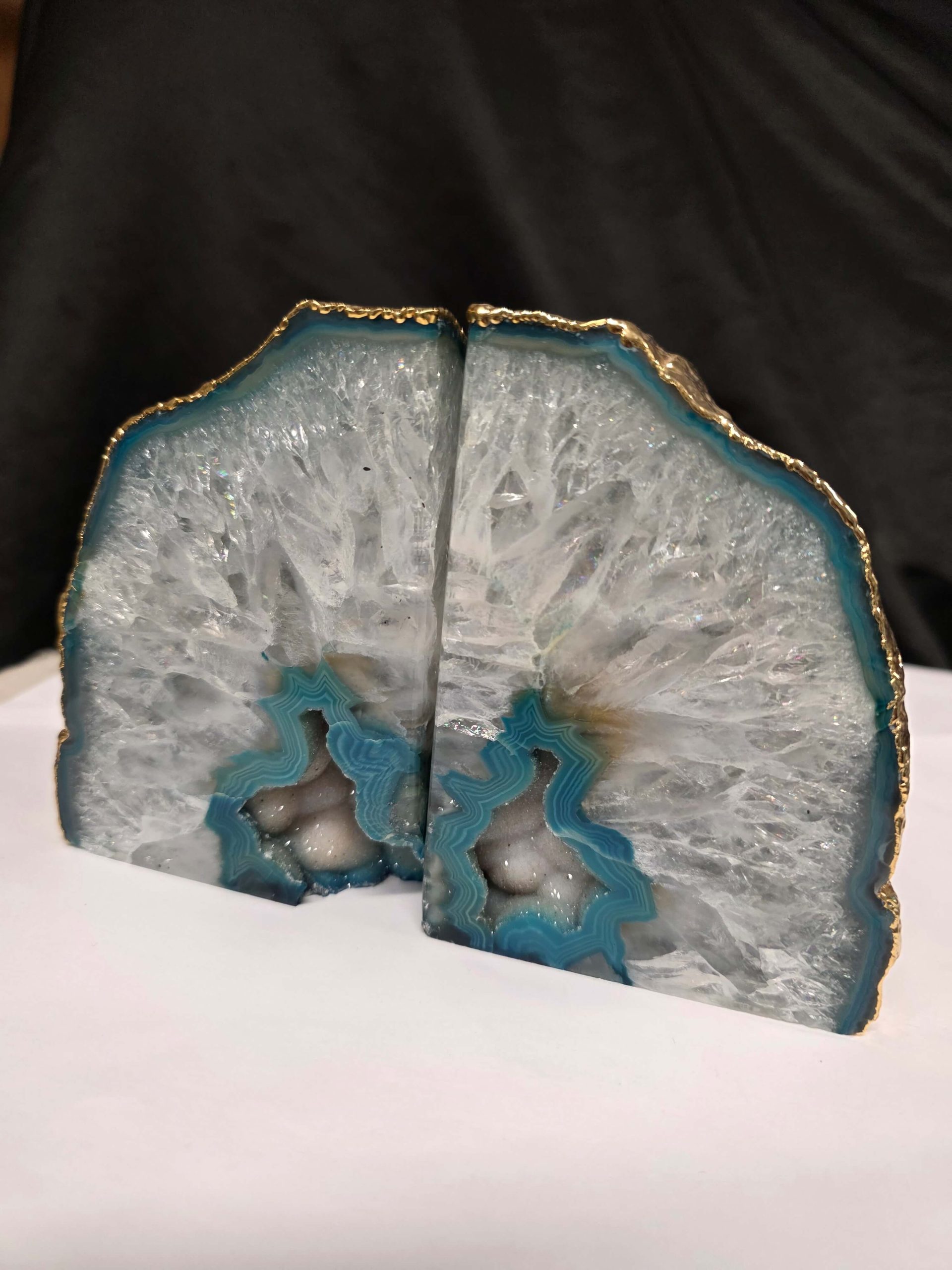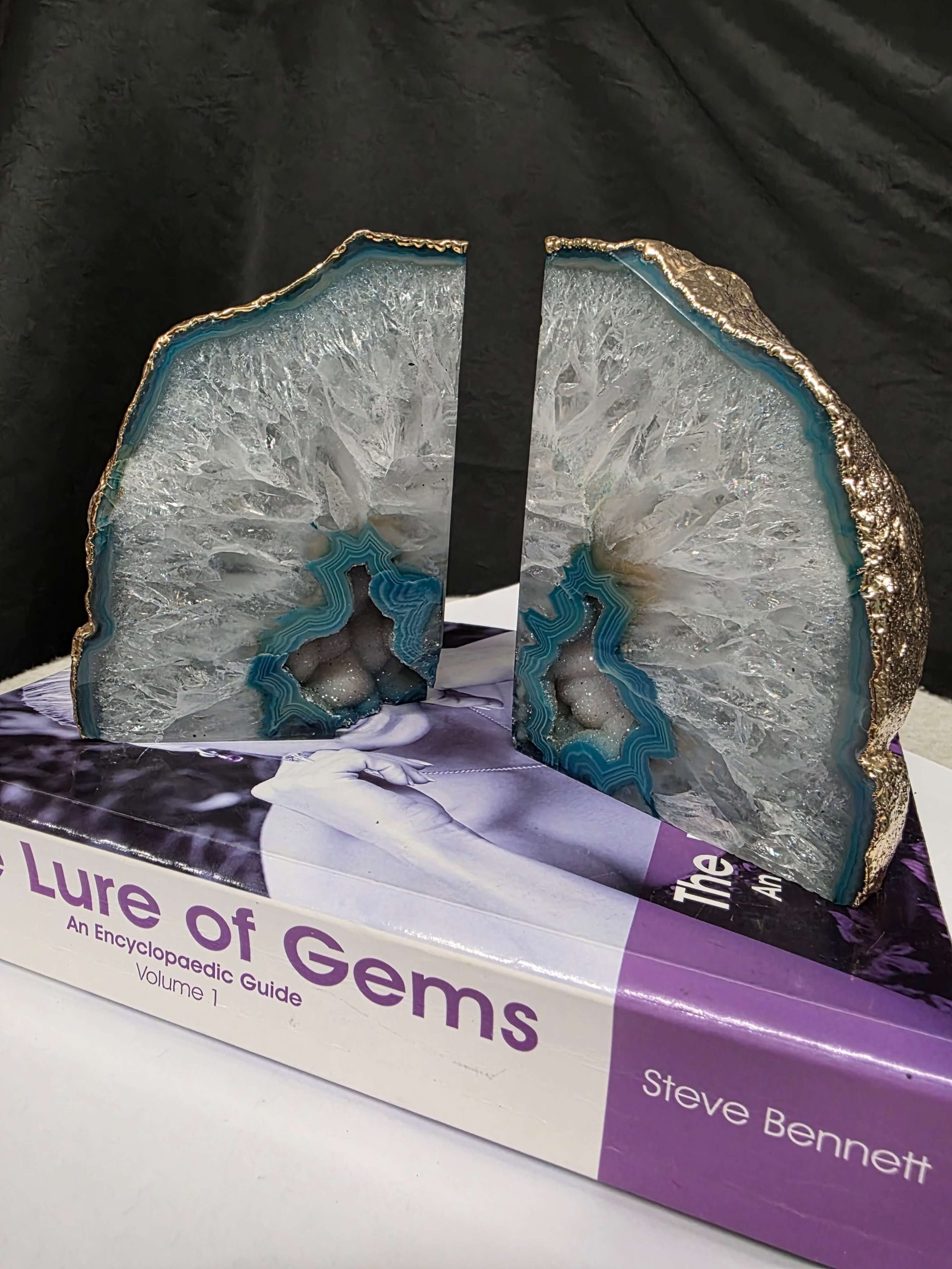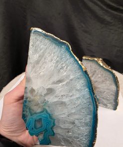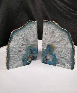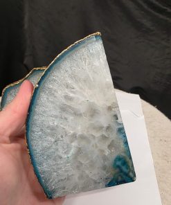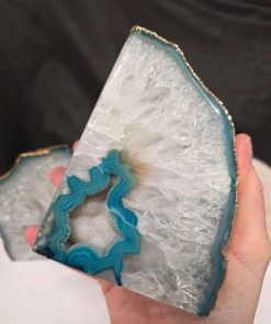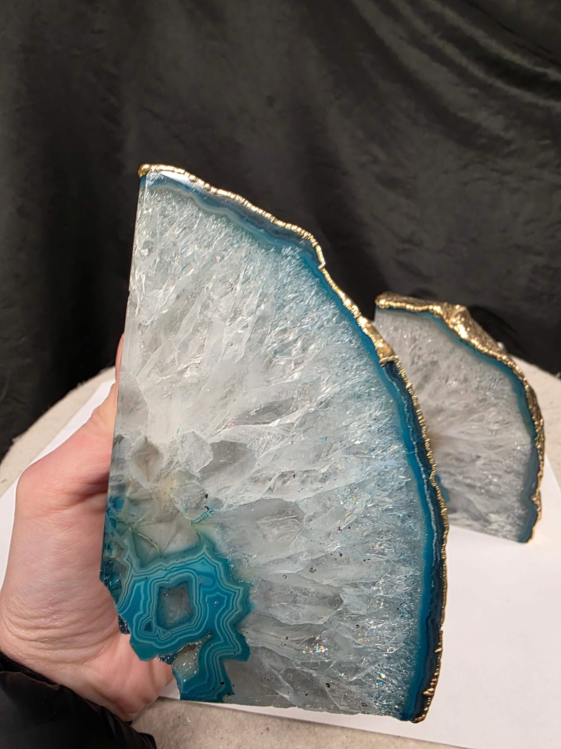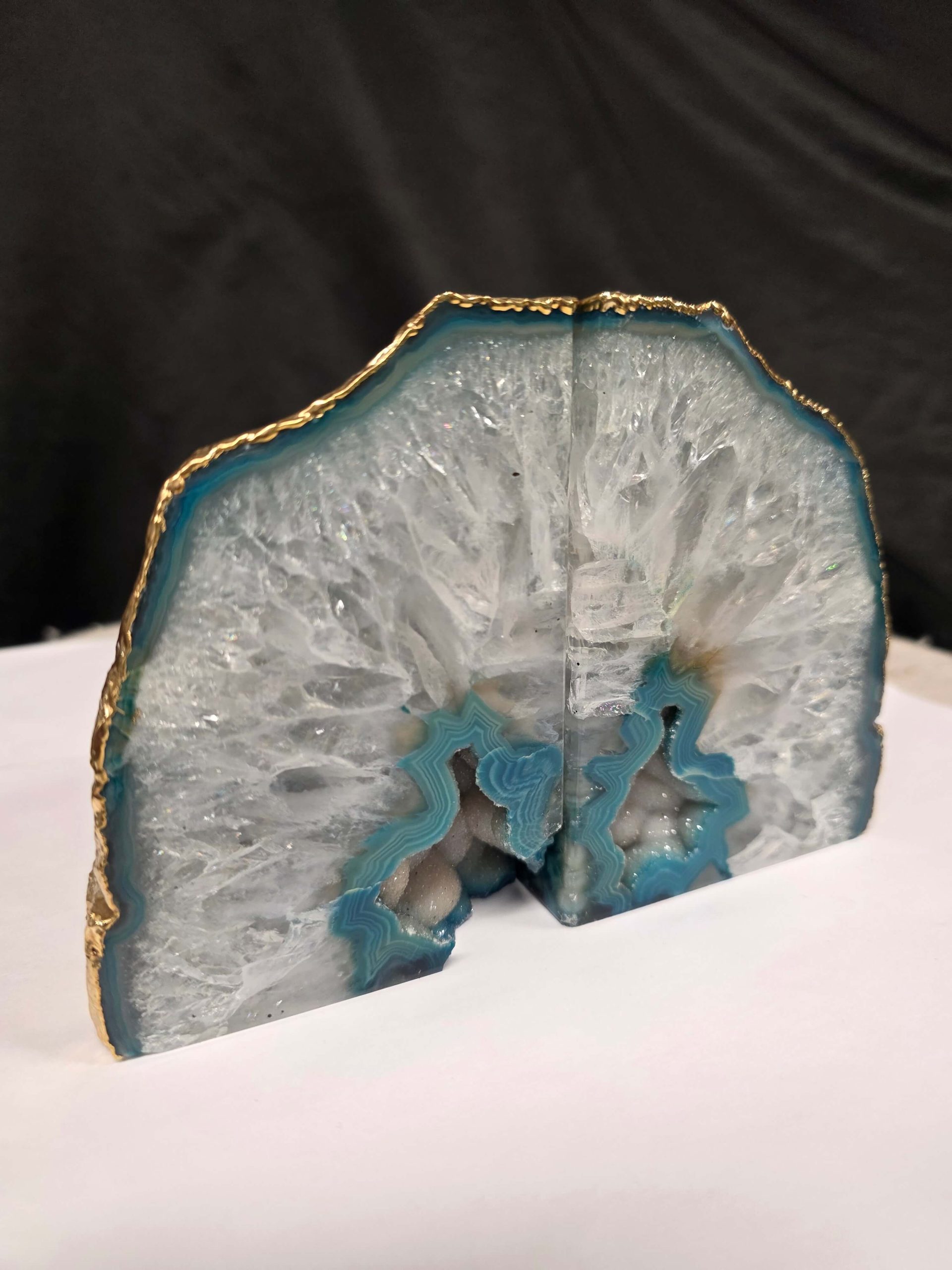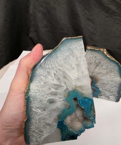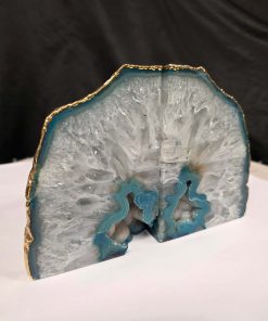 Teal Agate 24ct Gold Edge Microcrystalline Quartz Premium Bookends 1 Ornament Handpicked. Size is 1.971kg – H11.5xW16.5xD8cm.