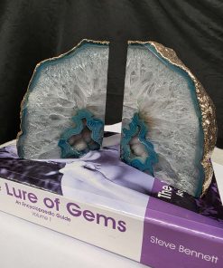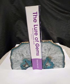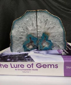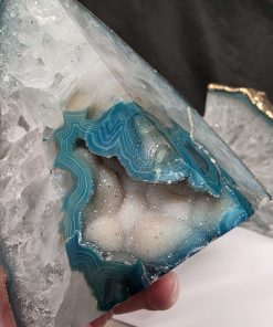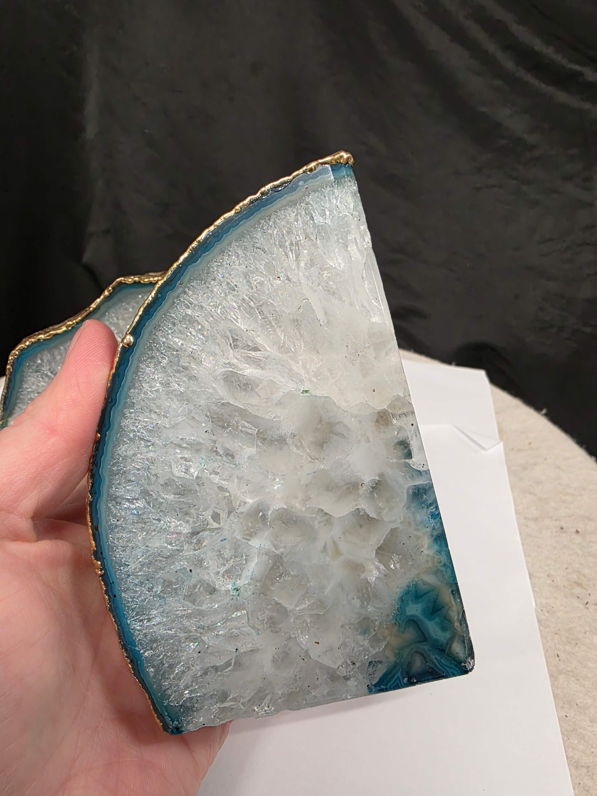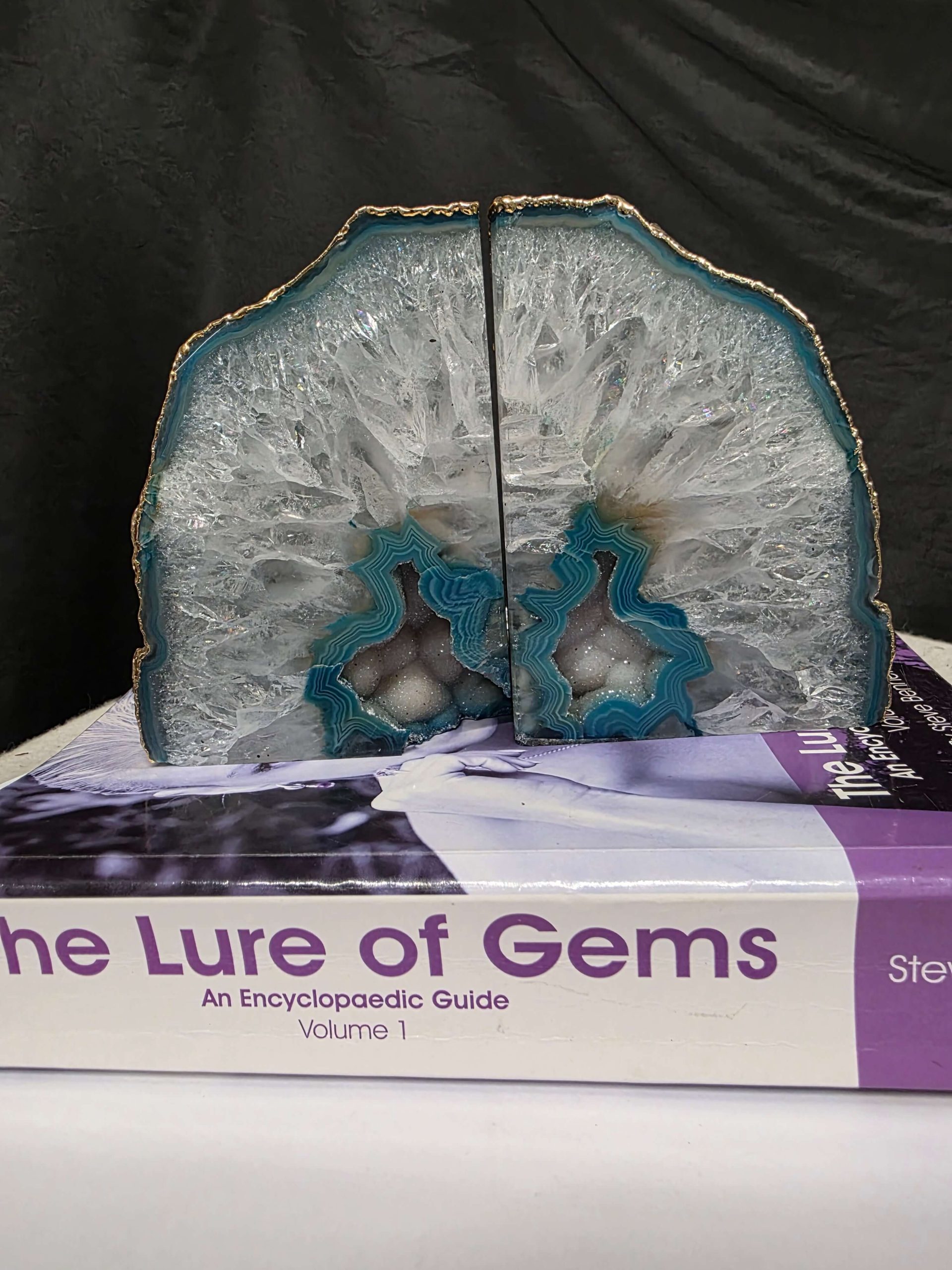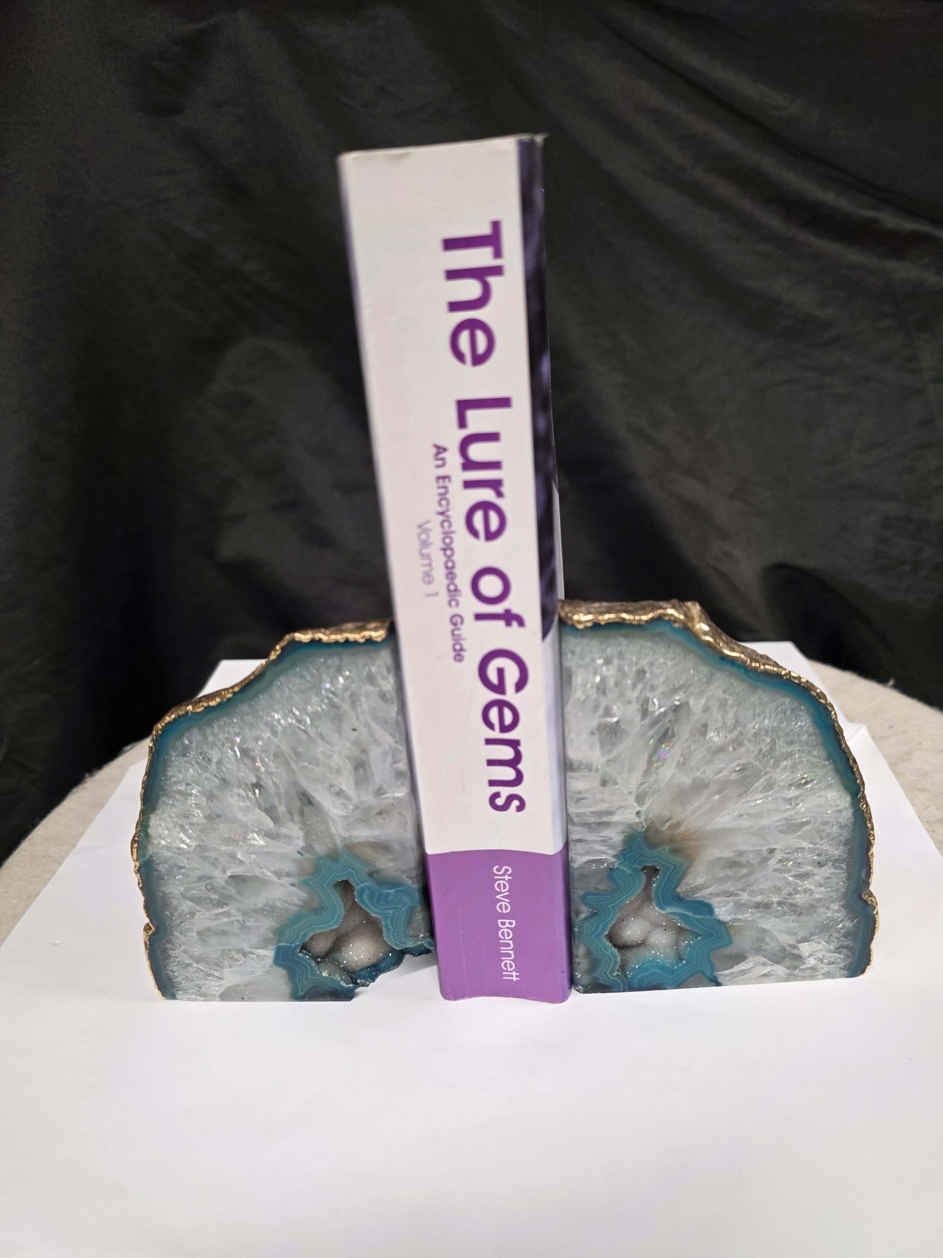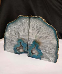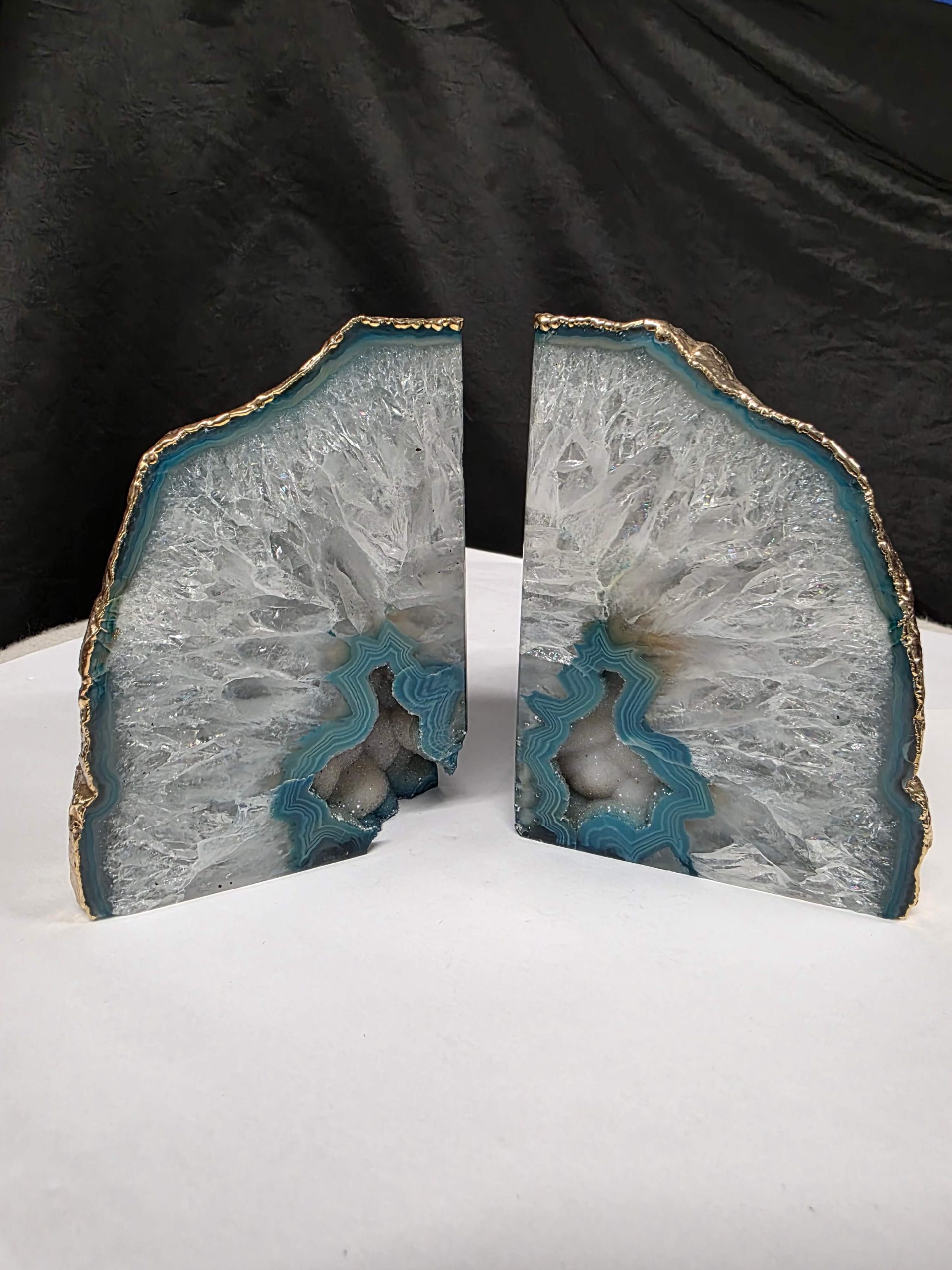 Teal Agate 24ct Gold Edge Microcrystalline Quartz Premium Bookends 1 Ornament Handpicked. Size is 1.971kg – H11.5xW16.5xD8cm.